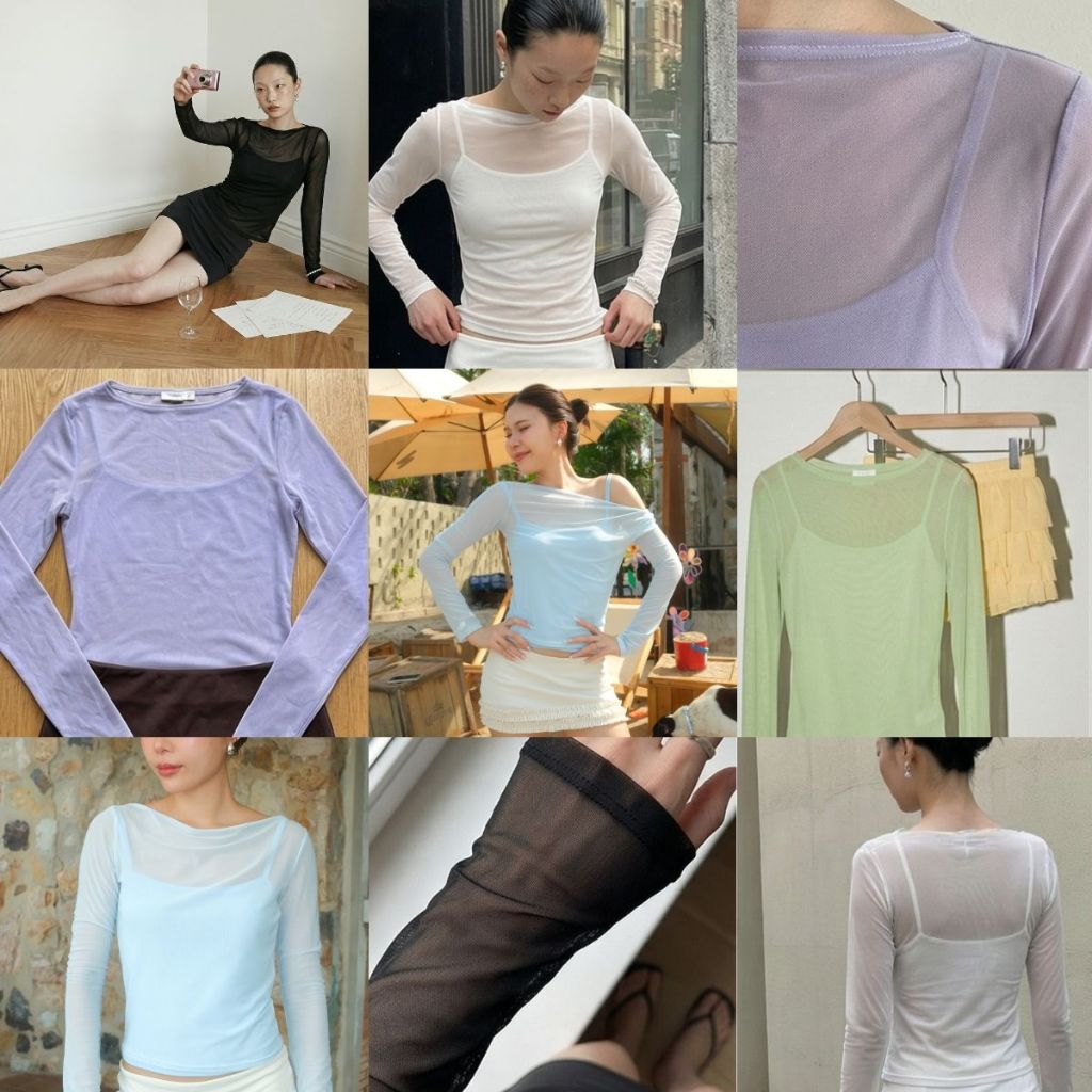 Thiar Long-sleeve Top | เสื้อ 2 ชิ้น ซีทรูแขนยาวพร้อมเสื้อสายเดี่ยวเบาสบาย ยืดตามตัว แมทช์ง่าย ซัมเมอร์ คาเฟ่ ทะเล| T192