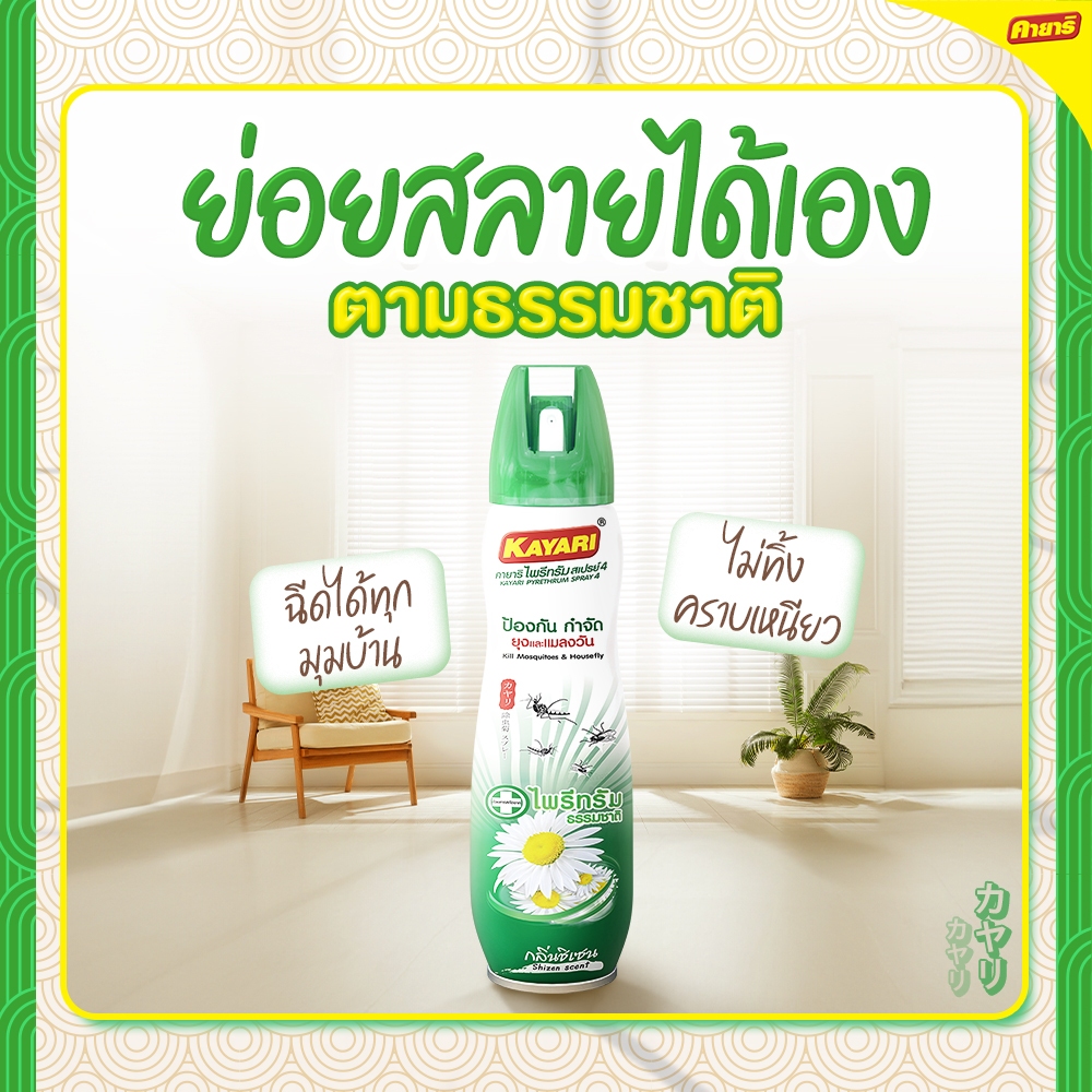 ทำบ้านให้น่าอยู่ KAYARI ไพรีทรัมสเปรย์กำจัดยุง และแมลงวัน สกัดจากดอกไพรีทรัมย่อยสลายได้ คายาริ 600 มล. รับประกันของแท้