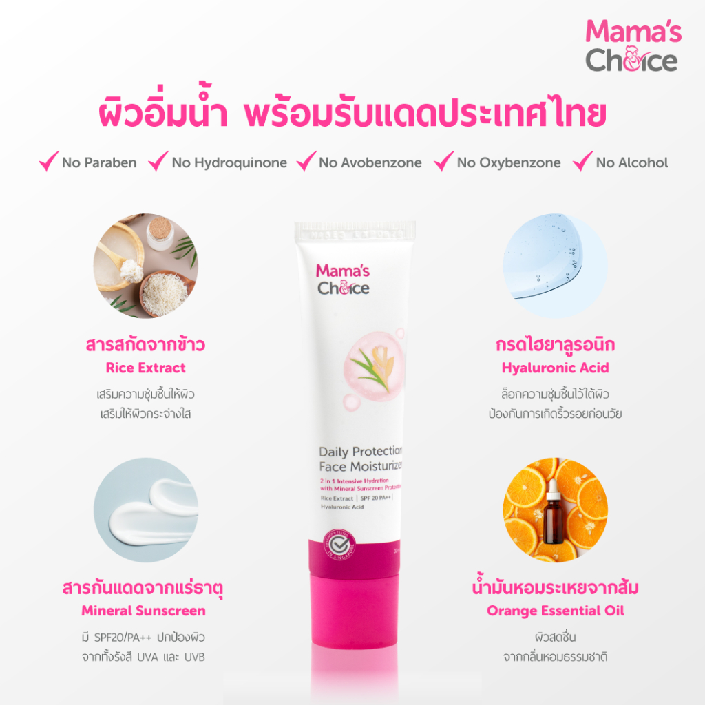 Mama's Choice มอยเจอร์ไรเซอร์ ครีมกันแดด (Mineral Sunscreen) บำรุงผิวหน้า ปลอดภัยสำหรับคนท้อง - Moisturizer