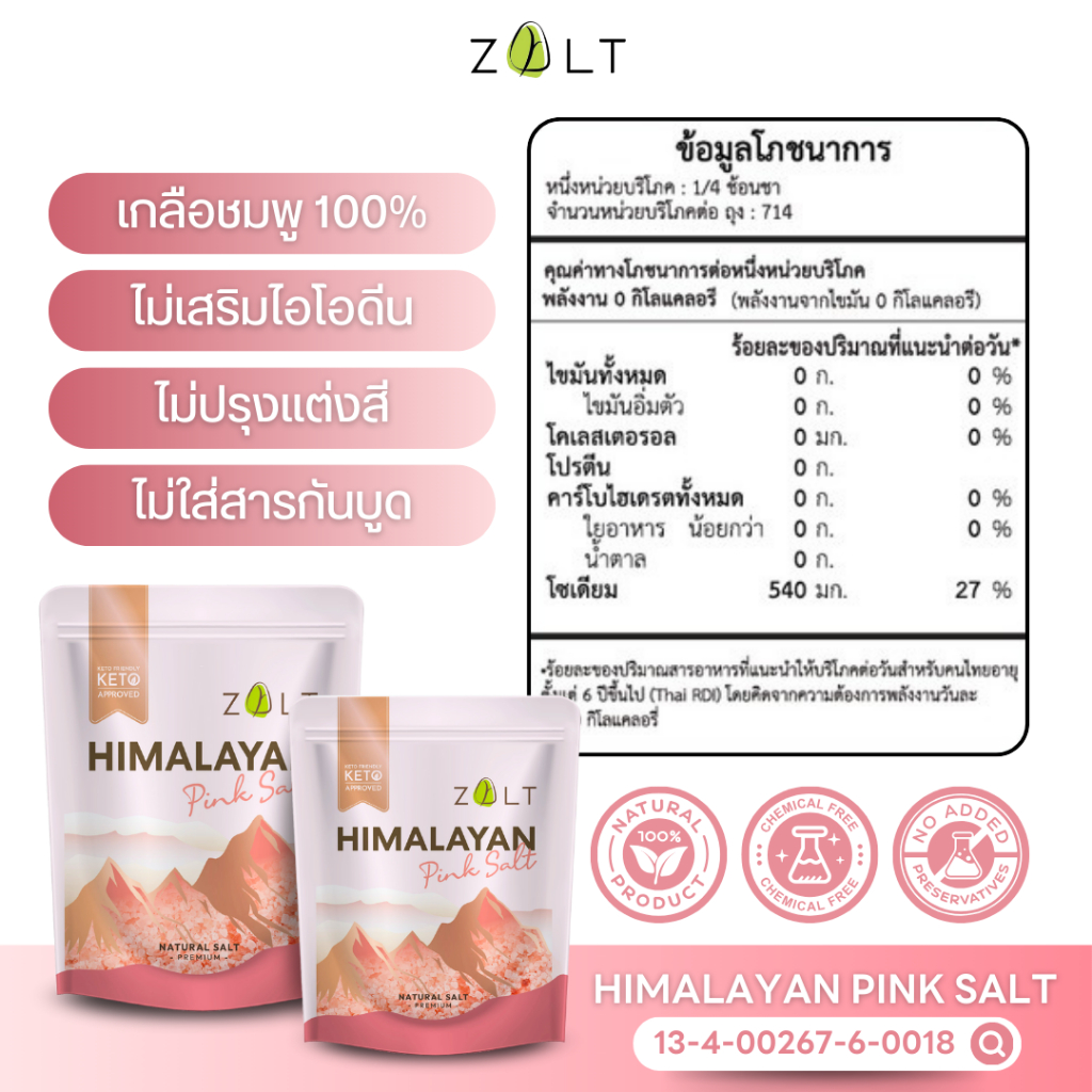 Zalt เกลือชมพู หิมาลายัน ✔️มีใบรับรอง/อย. นำเข้าจากปากีสถาน สำหรับปรุงอาหาร เกลือคีโต