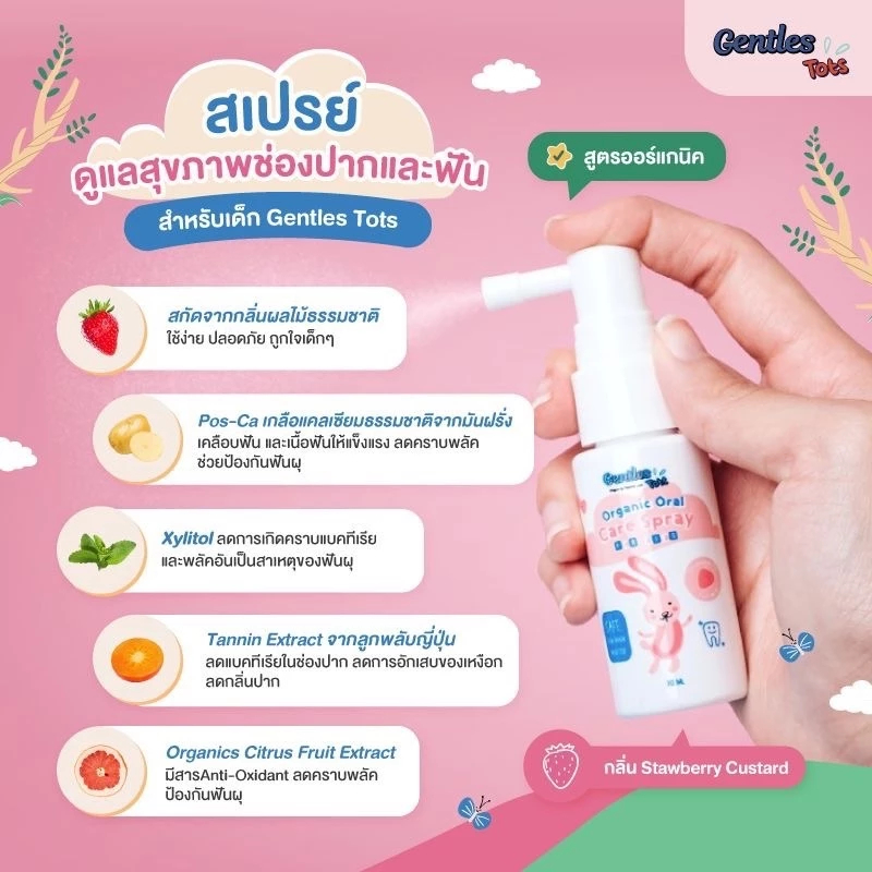Series Gentles Tots สเปรย์ป้องกันฟันผุ สเปรย์ฉีดฟัน เคลือบฟัน สเปร์ยฟันออร์แกนิค สำหรับเด็ก 1 ปี+