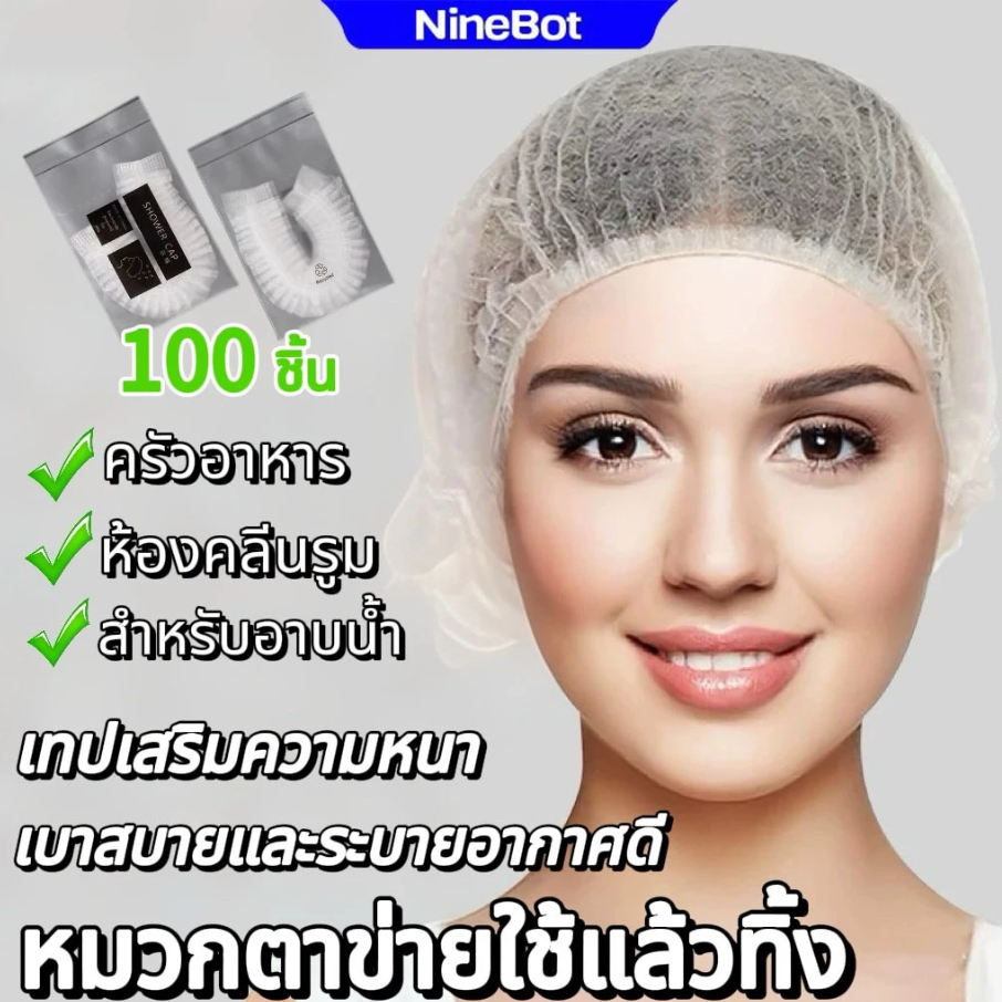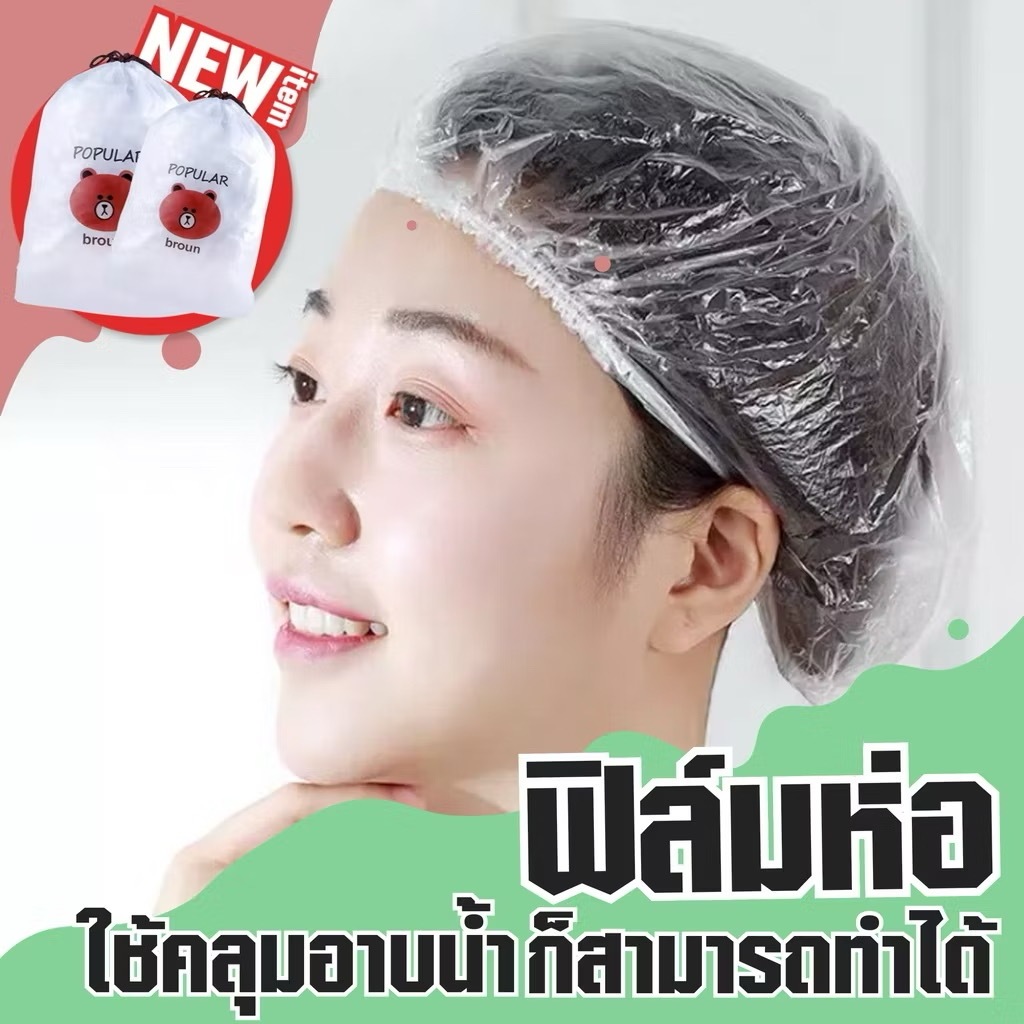 100 ชิ้น หมวกอาบน้ำพลาสติกใส สำหรับใช้ทิ้ง หมวกอาบน้ำพลาสติกใส สำหรับคลุมอาหาร