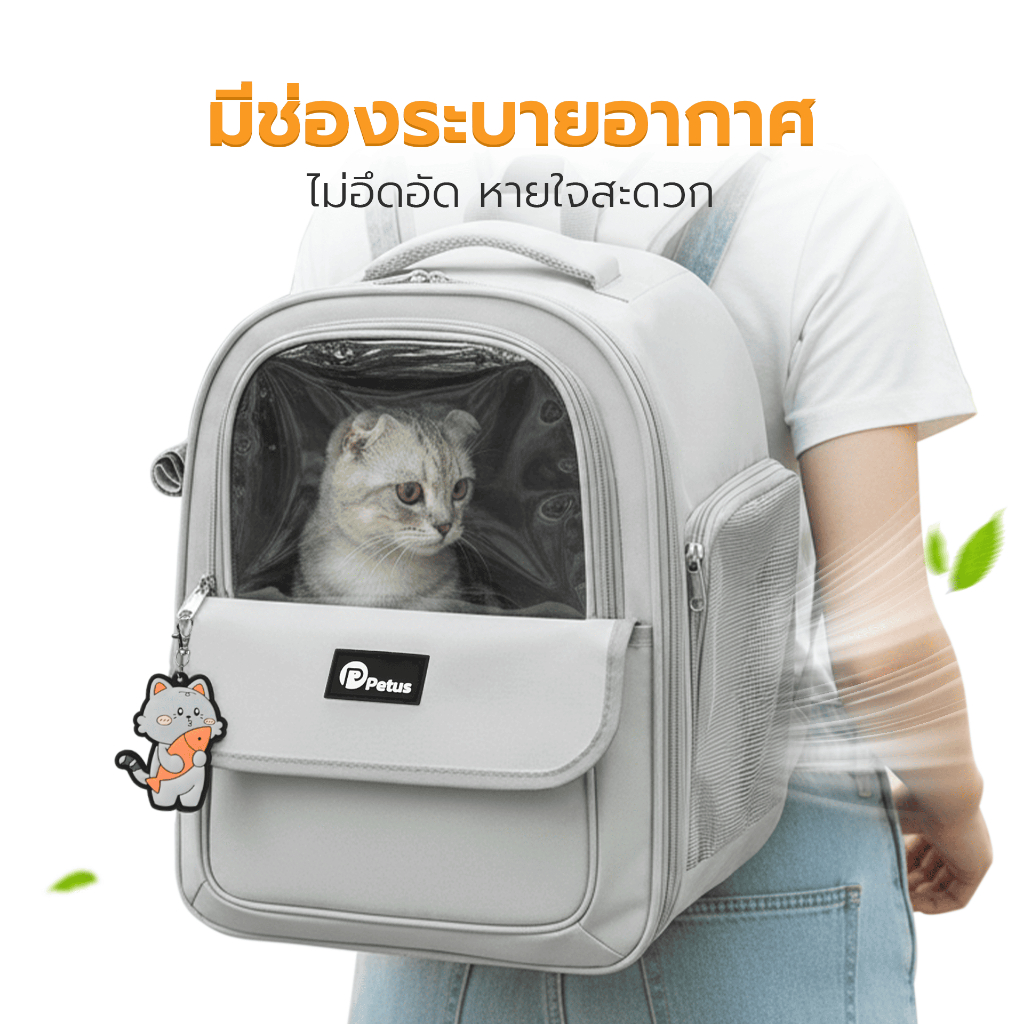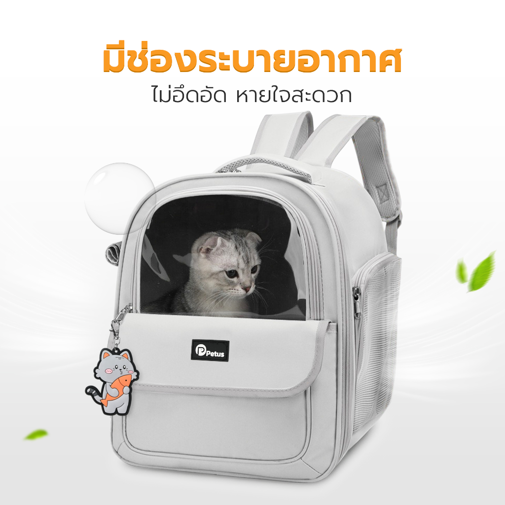 Petus กระเป๋าเป้ใส่สัตว์เลี้ยง เป้สัตว์เลี้ยง Pet Backpack carrier ทำความสะอาดง่าย ทนการขีดข่วน ภายในกว้าง ไม่ยุบง่าย