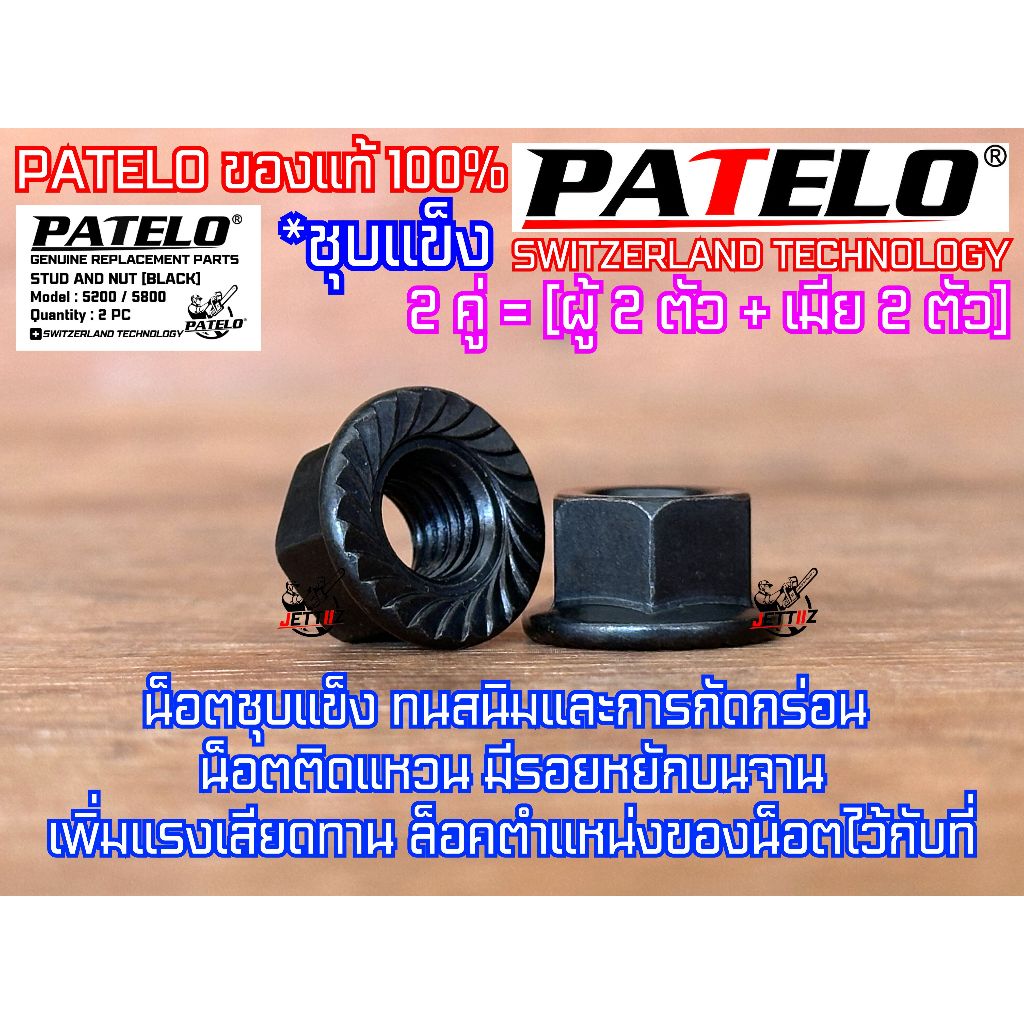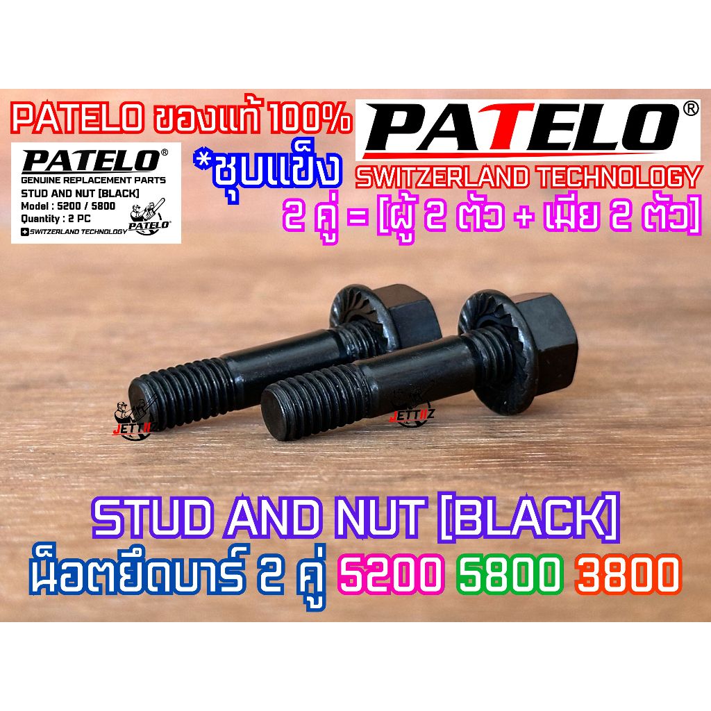 น็อตยึดบาร์ 5200 5800 3800 PATELO ของแท้100% 2คู่ ผู้2เมีย2 STUD NUT SET ใส่เลื่อย NEWWEST Blackbull กระทิงดำ Arto ZOMAX
