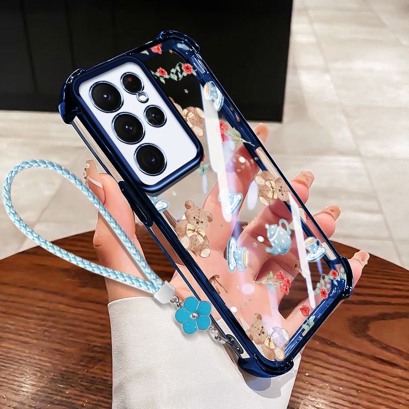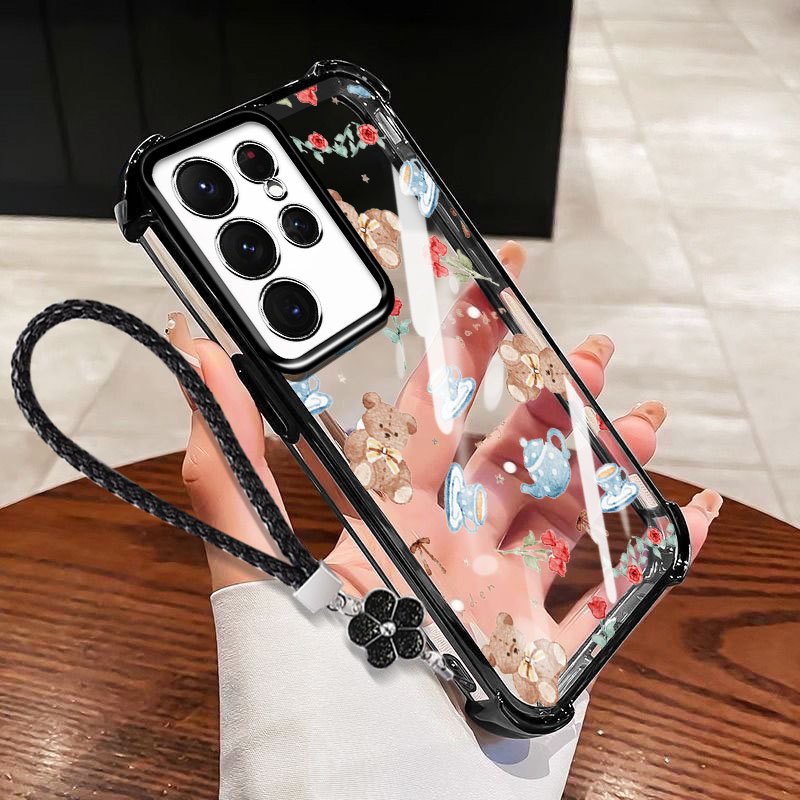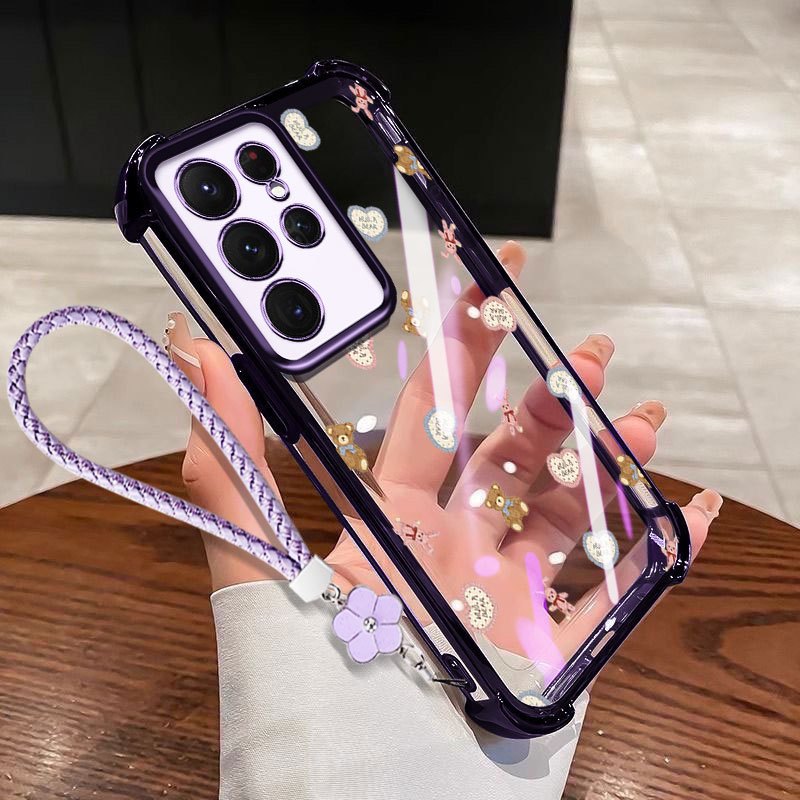 SAMSUNG YBDเคสโทรศัพท์สําหรับSamsung Galaxy S25 Plus S24 Plus S23 S24 S25 Ultra S23FE S24FE S25FE S24 + S23 + S25 + Clear Anti Drop Soft Shellน่ารักหมีแขวนเชือก