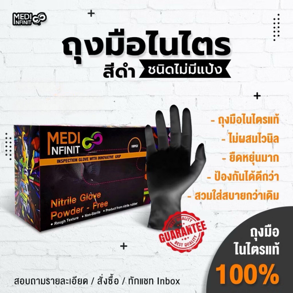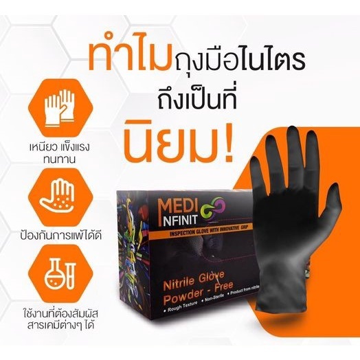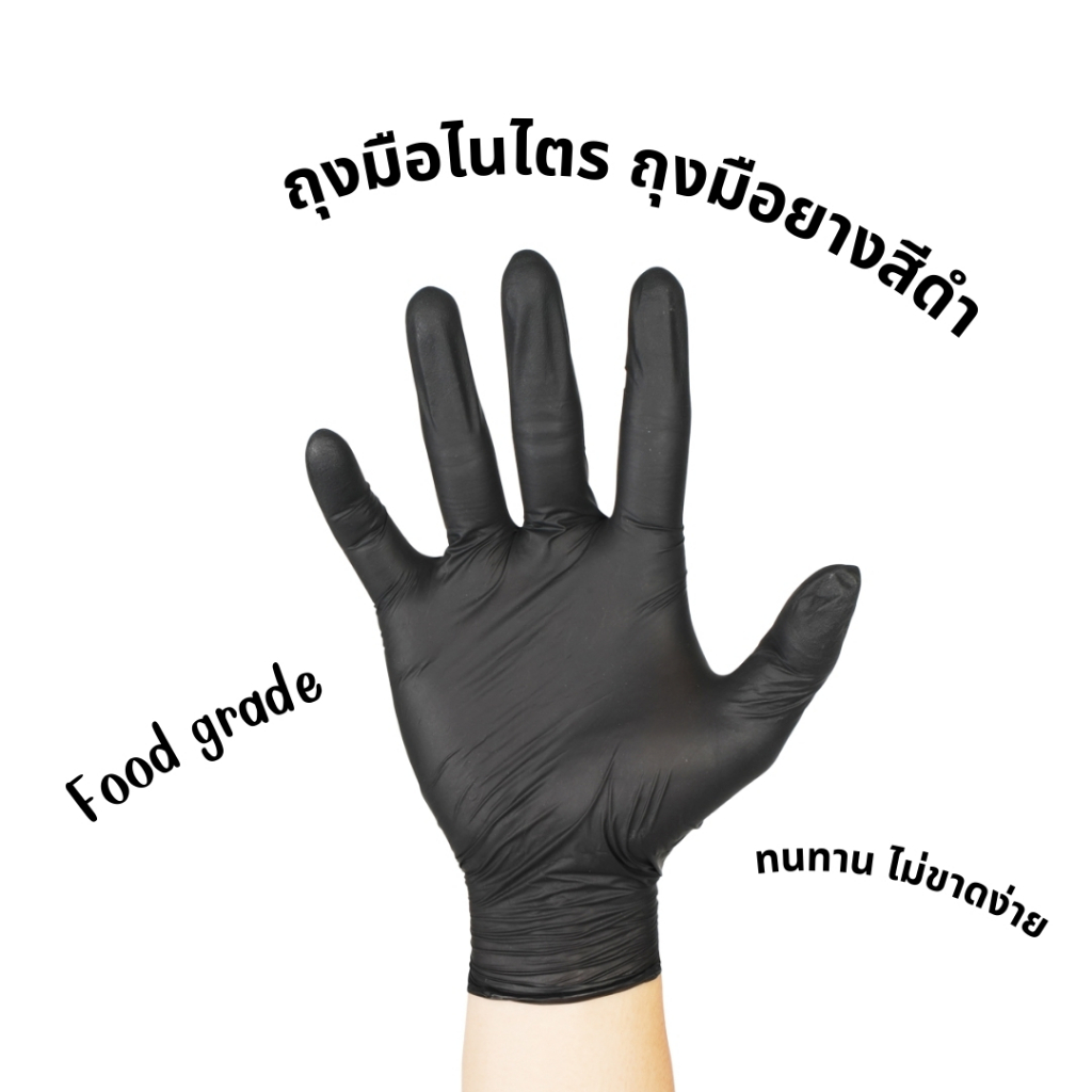 [ ลด 20% ⚡] ถุงมือสีดำ ถุงมือไนไตร ถุงมือยาง ไม่มีแป้ง Food Grade ยืดหยุ่น แข็งแรง ไม่ขาดง่าย ราคาโรงงาน gloves