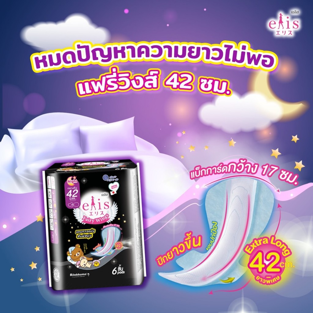 [แพ็ค 6] Elis ผ้าอนามัย เอลิส แฟรี่ วิงส์ ซึมซับดี กาวติดแน่น ผ้าอนามัยกลางวันและกลางคืน Elis Fairy Wings