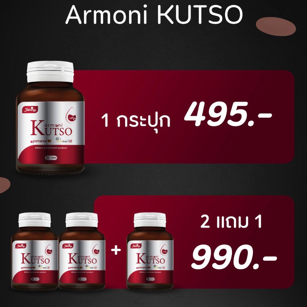 [ ส่งทุกวัน ส่งด่วน 2 ชั่วโมง ] ARMONI KUTSO อาโมนิ คัทโซ ลดบวมโซเดียม ติดเค็ม [ บริษัท โป๊ยเซียน จำกัด ]