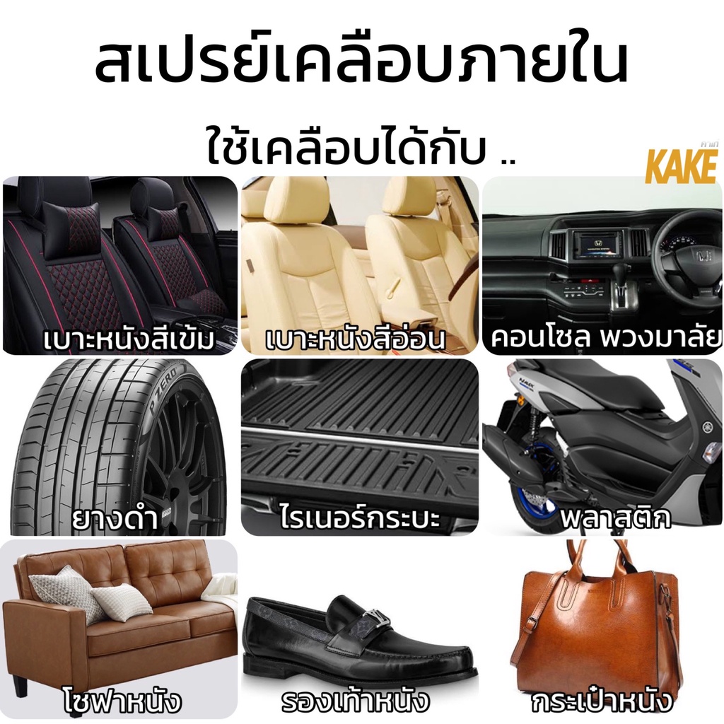 KAKE คาร์เก้ น้ำยาเคลือบภายใน บำรุง+ฟื้นฟู KT พลาสติก เครื่องหนัง 250มล. สูตรฟื้นฟู บำรุง เงาฉ่ำ ติดทนนาน
