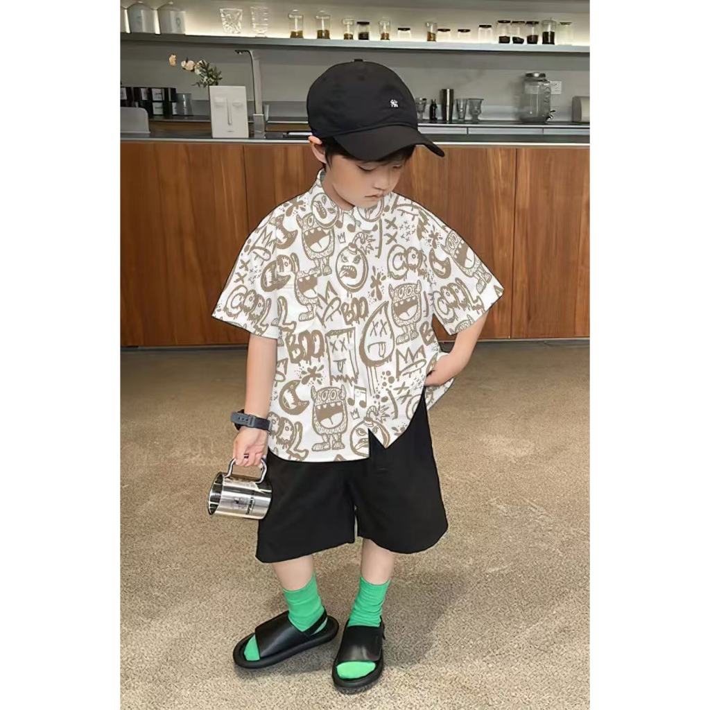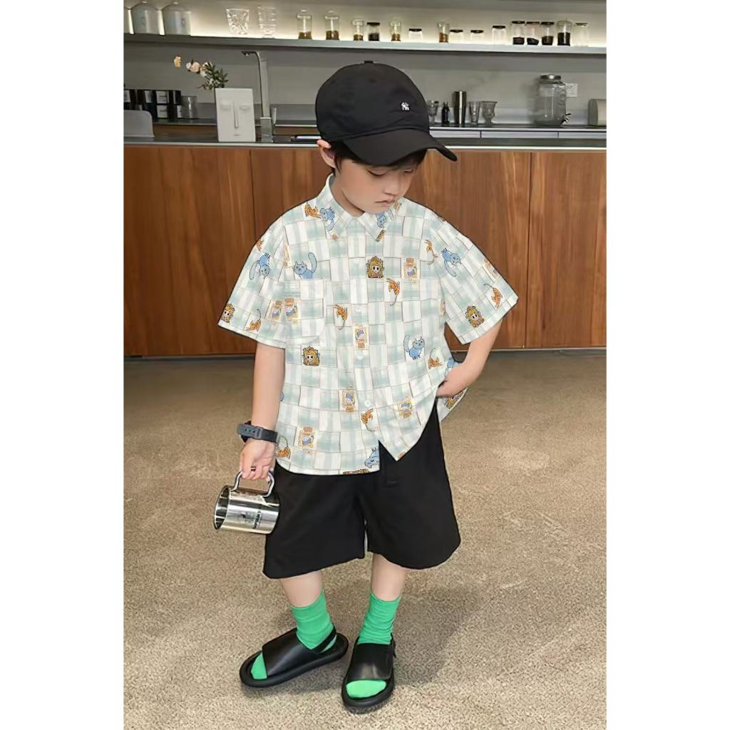ชุดฮาวายเด็ก ชุดฮาวายเด็กผู้ชาย งานแฟชั่น พิมพ์ลายการ์ตูน ใส่เที่ยวได้ ไซส์80-150