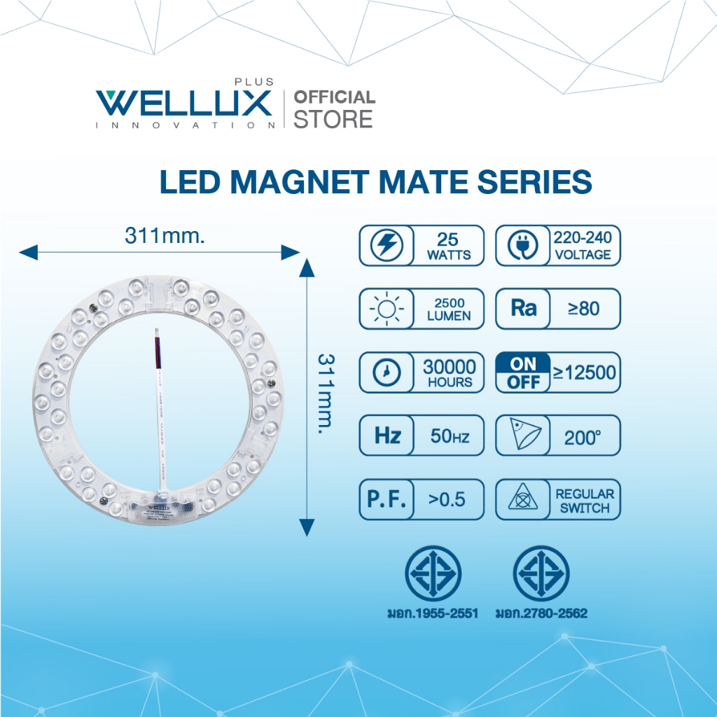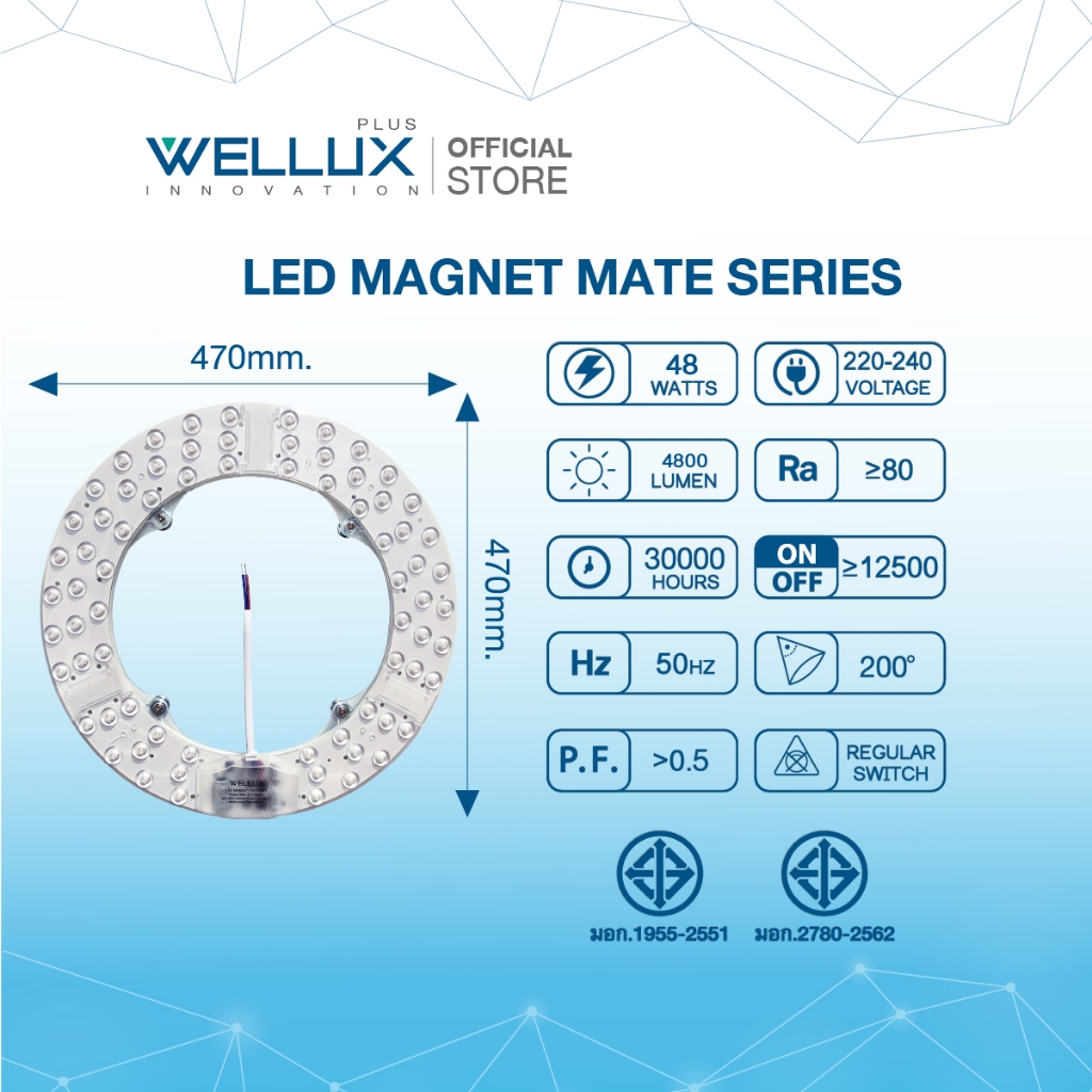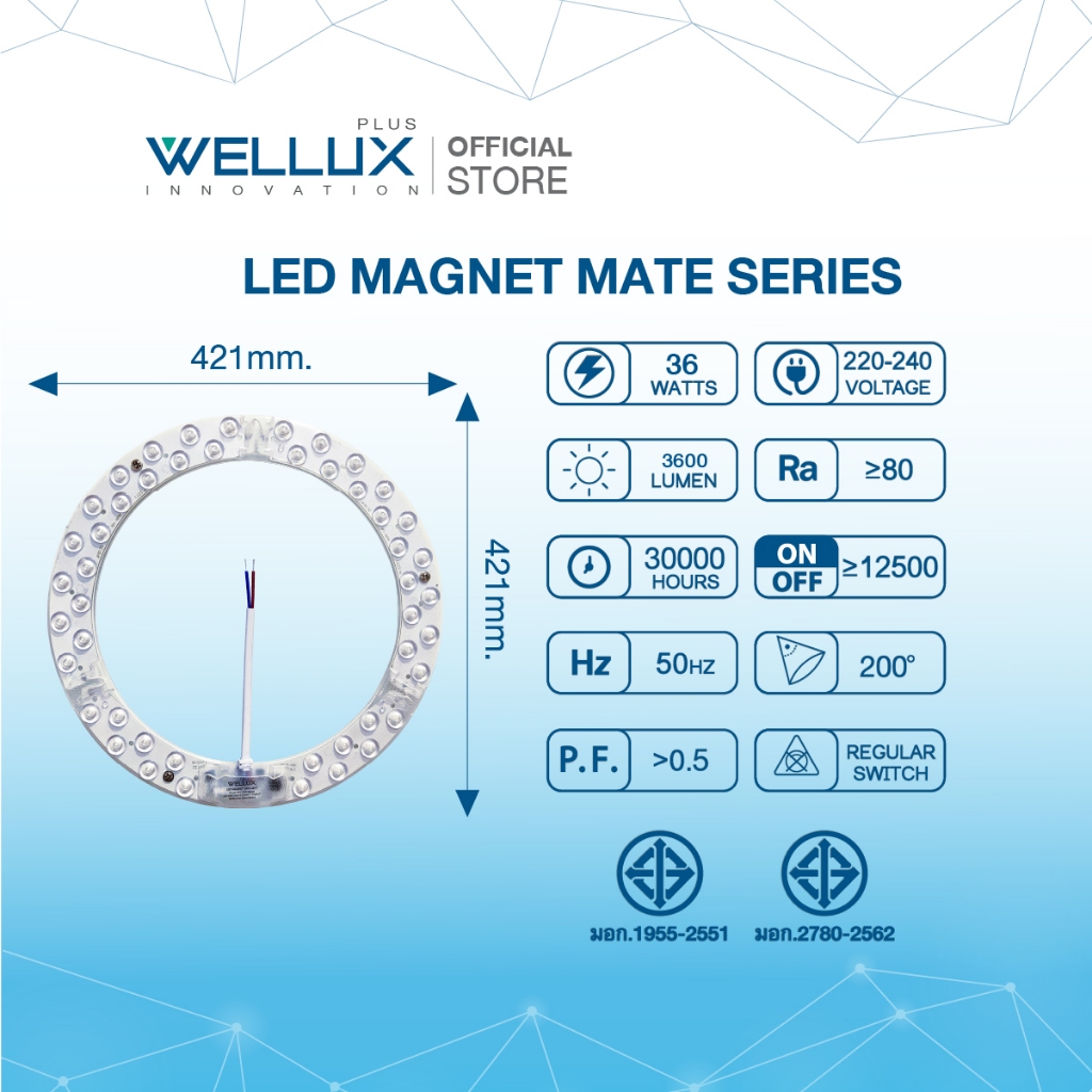 WELLUX แผงไฟแม่เหล็ก 25W 36W 48W แสงขาว ทดแทนหลอดนีออนกลม LED MAGNET รุ่น MATE SERIES