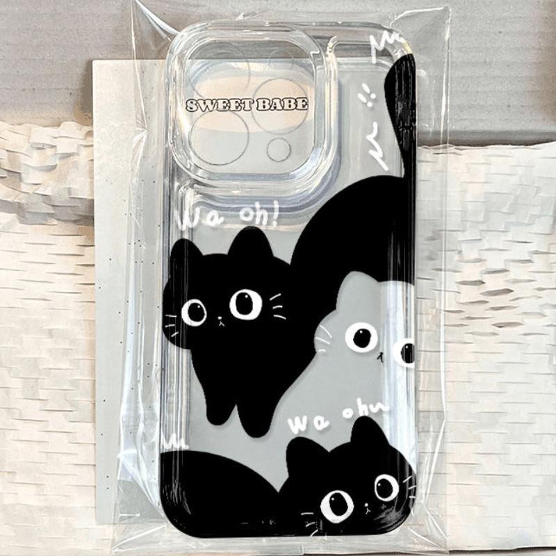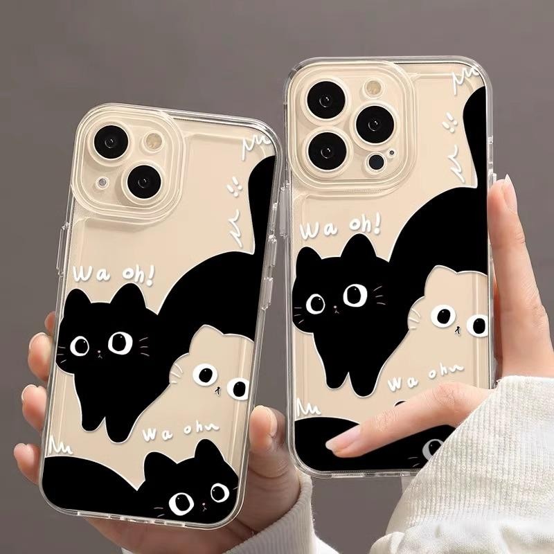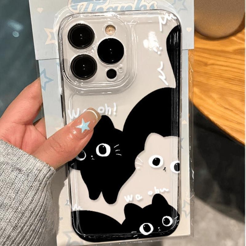 สีดําสีขาวแมวสําหรับiPhone 17Air 16 15 14 13 12 11 Pro Max XR SEกันกระแทกปลอกอ่อน