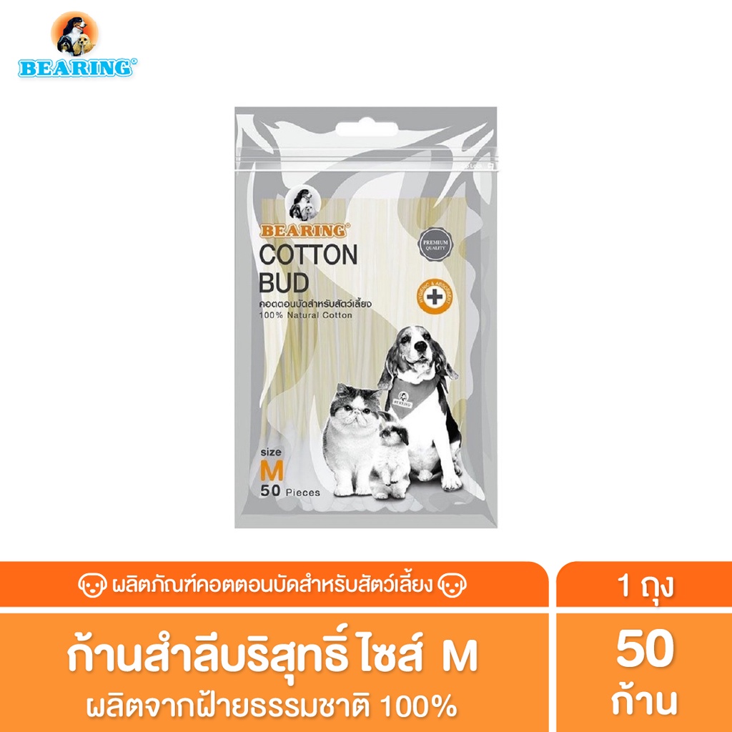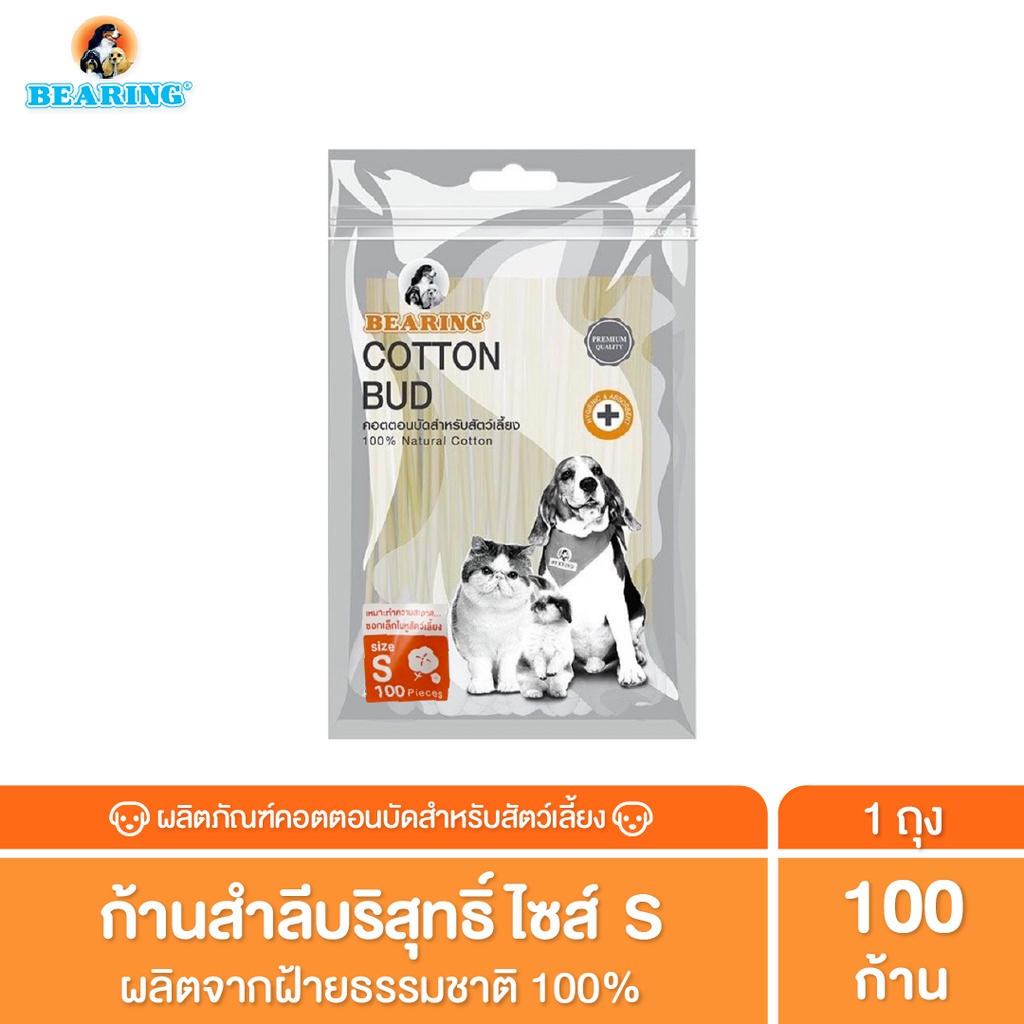 BEARING Cotton Bud สำลีก้าน สำหรับสัตว์เลี้ยง ทุกขนาด สำลีเช็ดหูสัตว์เลี้ยง คอตตอนบัดสุนัข แมว Size S-L 50-100 ก้าน