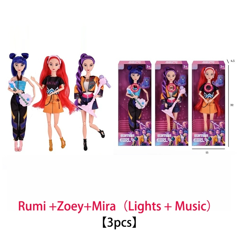 (ประเทศไทยTH)ด้วยแสงสีและเสียงดนตรี ของเล่นตุ๊กตา kpop demon hunter Zoey Mira Rumi Action Figure ชุดของเล่นเด็กของขวัญ
