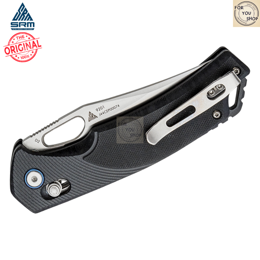 มีดพับ SRM 9201ใบมีด D2 ขนาด 3.54 นิ้ว Satin Clip Point ด้าม G10 AXIS/Crossbar Lock สีดำ