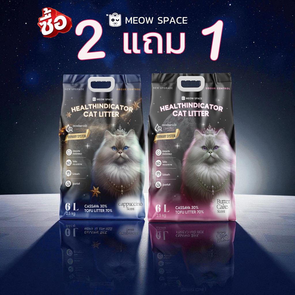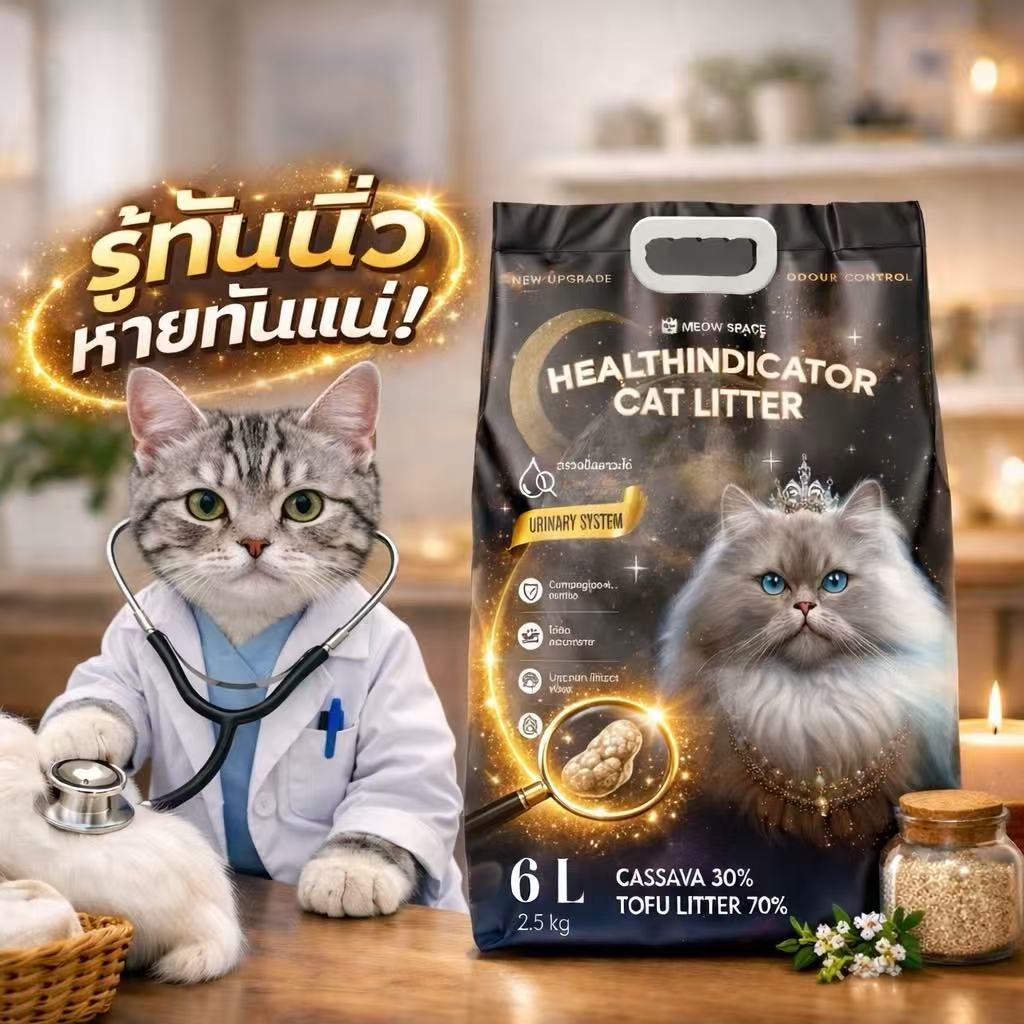 (ซื้อ2ถุง แถม 1ถุง MeowSpace ทรายแมวตรวจปัสสาวะแมว ทรายแมวเต้าหู้ผสมมันสำปะหลัง มีเม็ดตรวจสีปัสสาวะ ขนาด 6 ลิตร