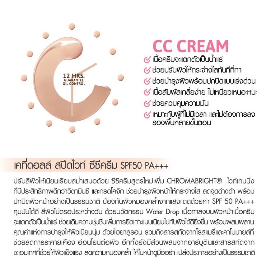 Cathy doll speed white CC cream SPF50+ PA+++ 50ml. เคที่ดอลล์ สปีดไวท์ ซีซี ครีม
