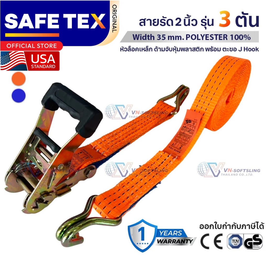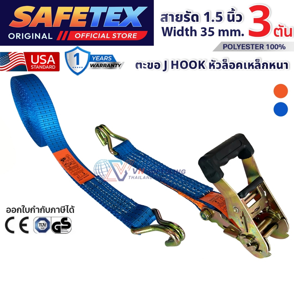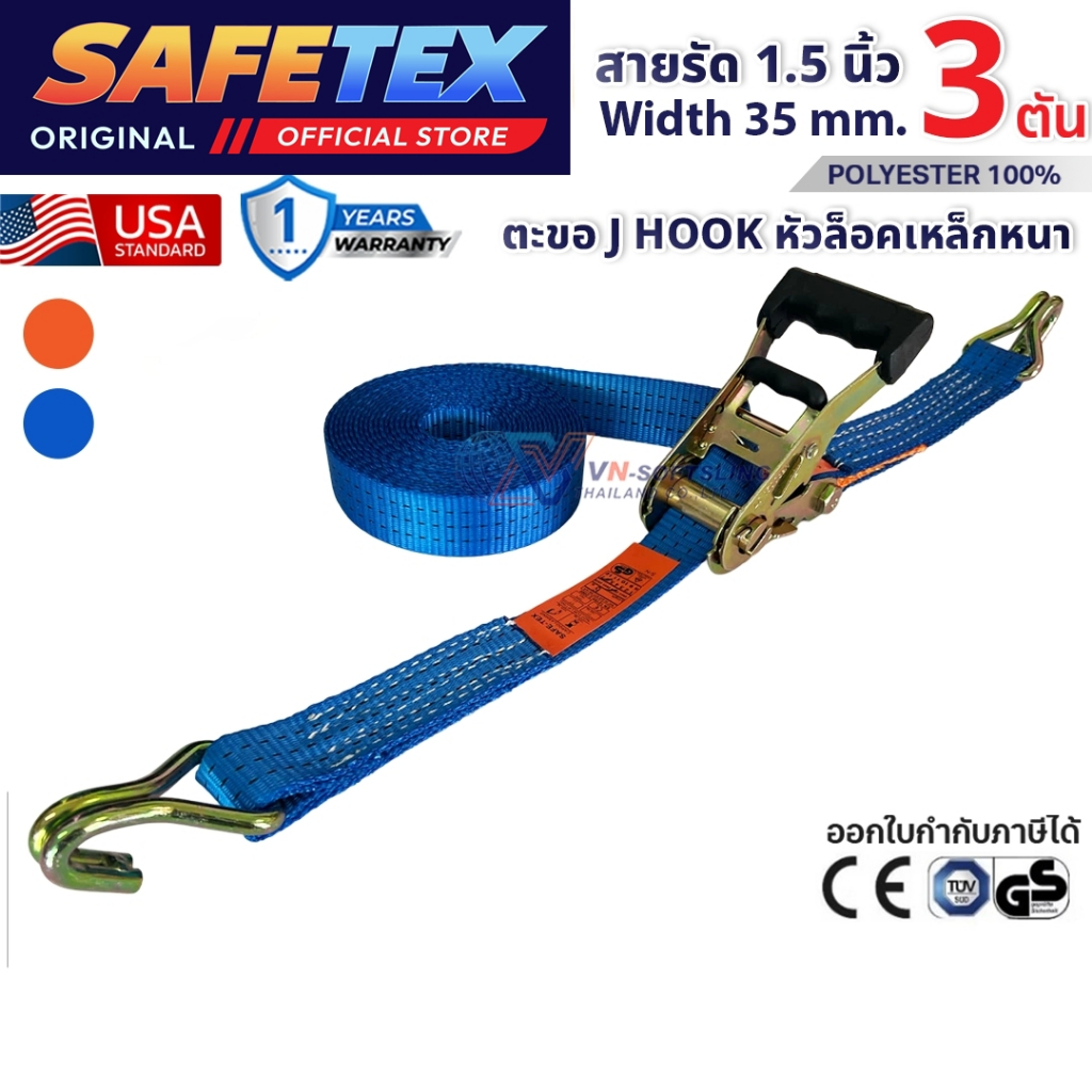 SAFETEX USA สายรัดก๊อกแก๊ก 1.5 นิ้ว รุ่น 3 ตัน(หัวหนา หุ้มยาง) สายรัดรถบรรทุก สายรัดของ สายรัดสินค้า