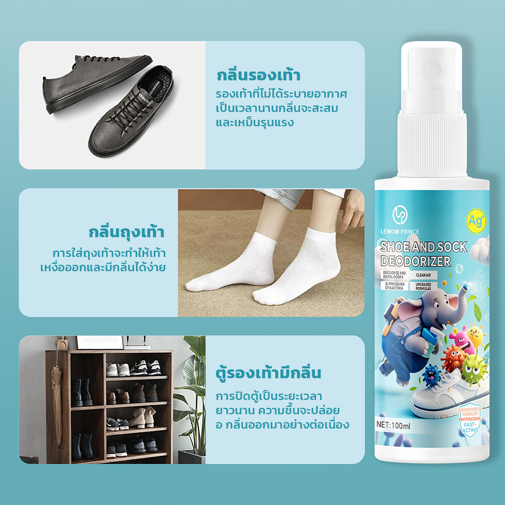 LEMOM PRINCE สเปรย์ดับกลิ่นรองเท้า 100ml ลดแบคทีเรีย กลิ่นหอมสดชื่น ไร้กลิ่นไม่พึ่งประสงค์ ตลอด24ชั่วโมง