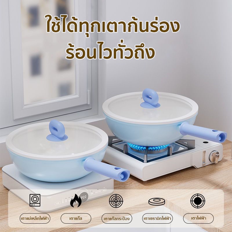 กระทะ ใช้ได้กับเตาทุกประเภท ขนาด20/24/26cm เกรดพรีเมี่ยม ไม่ติดกระทะ ทำความสะอาดง่าย หม้อเคลือบเซรามิก