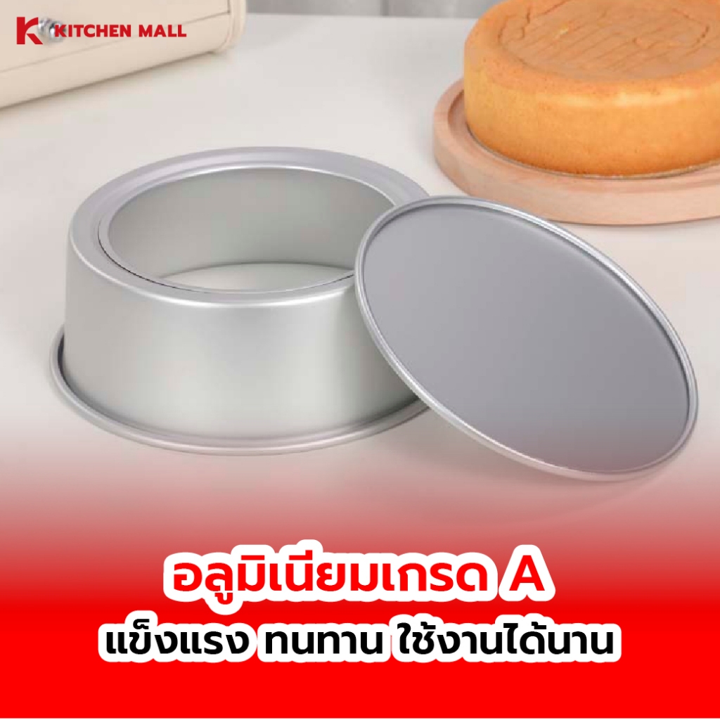 KitchenMall พิมพ์เค้กกลมอลูมิเนียม ถอดก้นได้ คุณภาพมาตรฐาน Food Grade