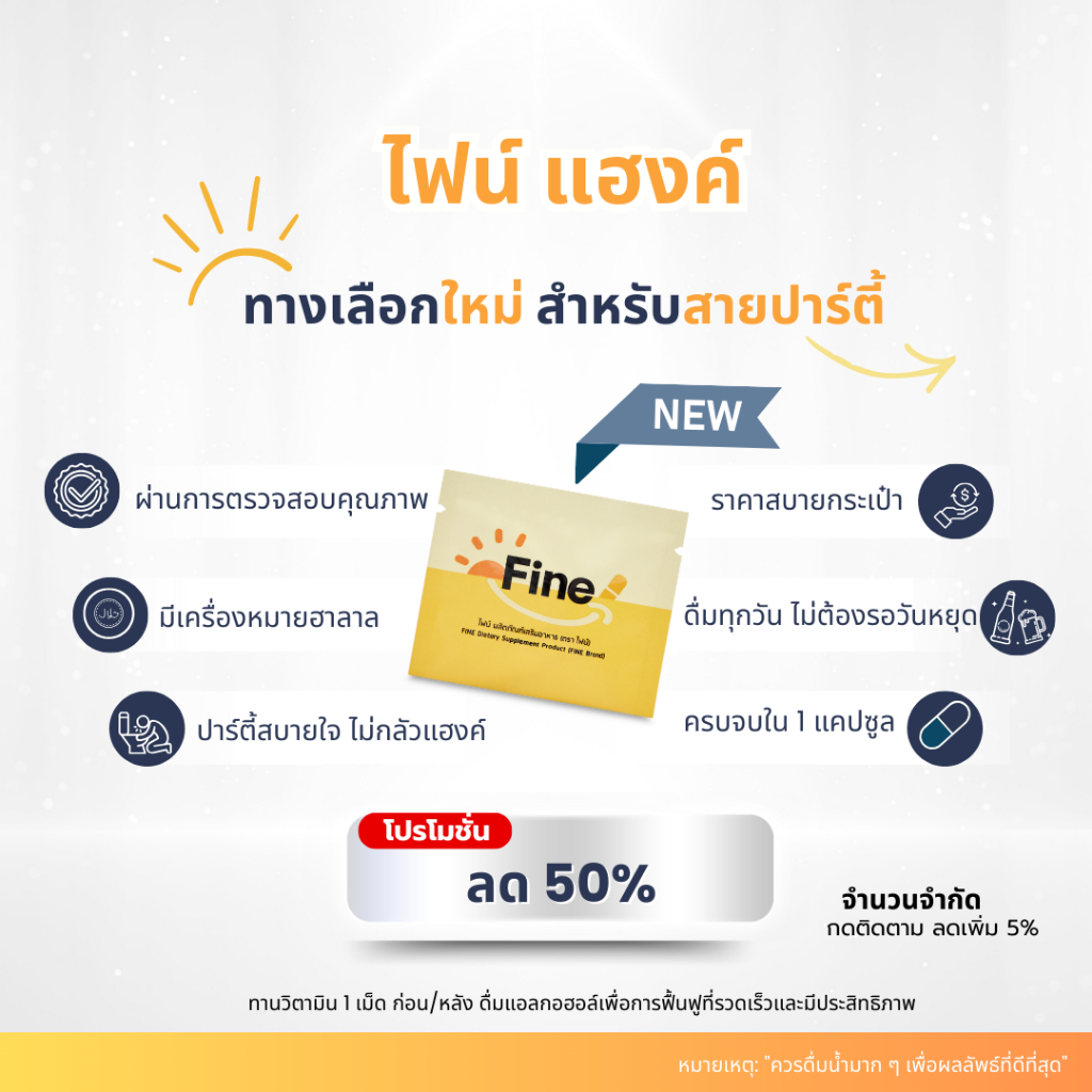 Fine Vitamin (ไฟน์ วิตามิน) อาหารเสริม แก้แฮงค์ ลดอาการเมาค้าง แค่ 1 แคปซูล