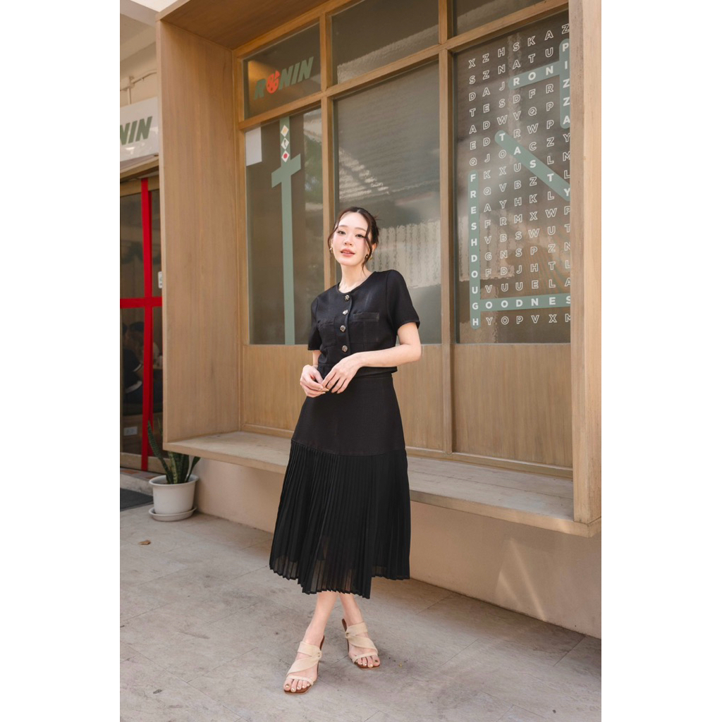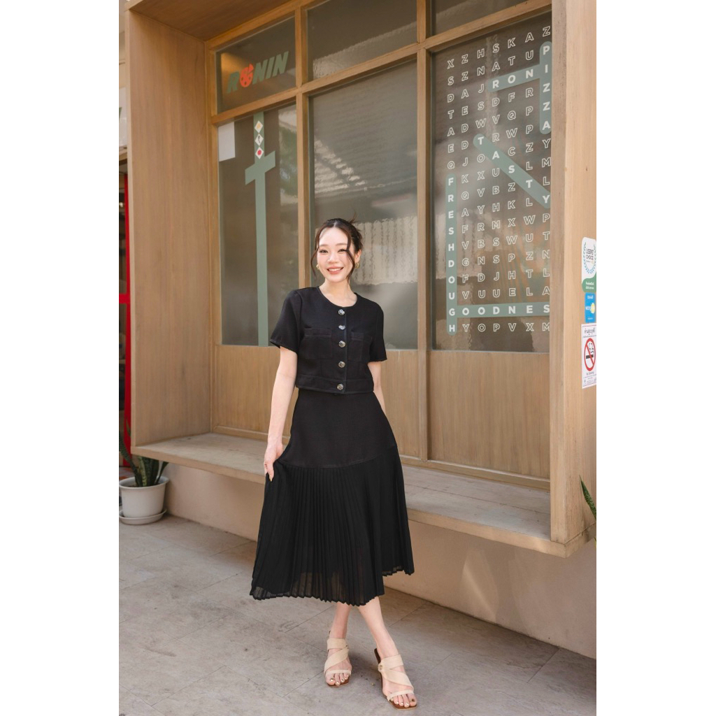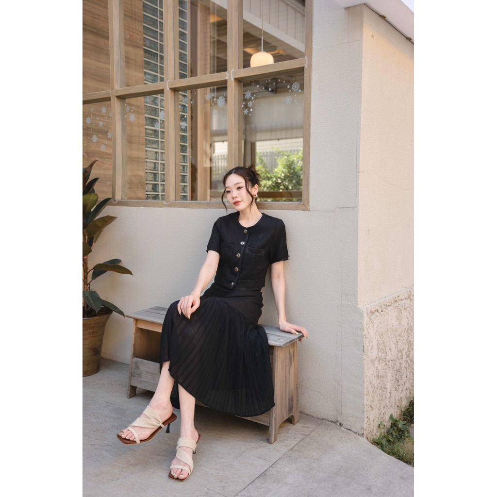 ร212 B x Pleated Tweed 🖤 😝 💐 ผ้าทวิตนุ่ม Set 2pcs. เสื้อคอกลม กระดุมแบบเรียบหรู