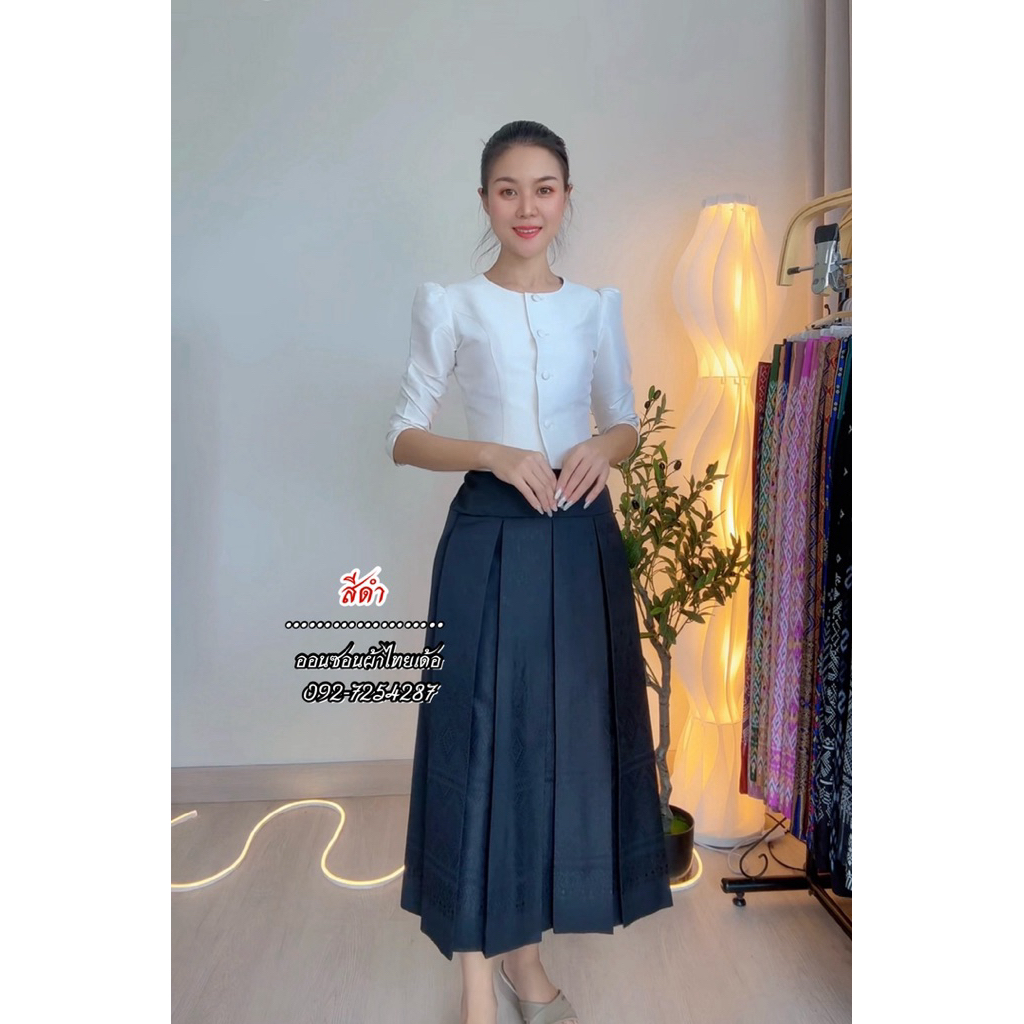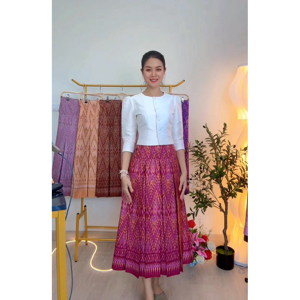 ❤️ขายดี❤️ กระโปรงทวิต ผ้าไหมเกษตรทอลาย/อัดกาว