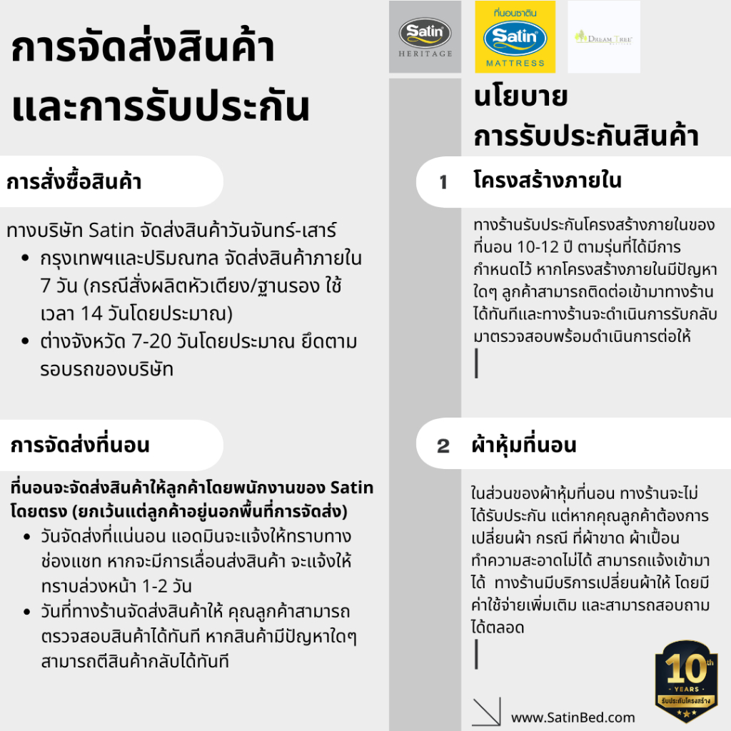 Satin ที่นอนซาติน Dream Tree รุ่น DAHLIA หนา 9 นิ้ว สีน้ำตาลเข้ม [แถมฟรี! หมอนหนุน]