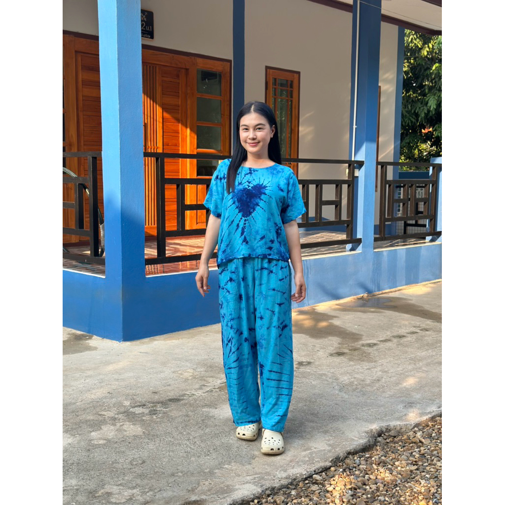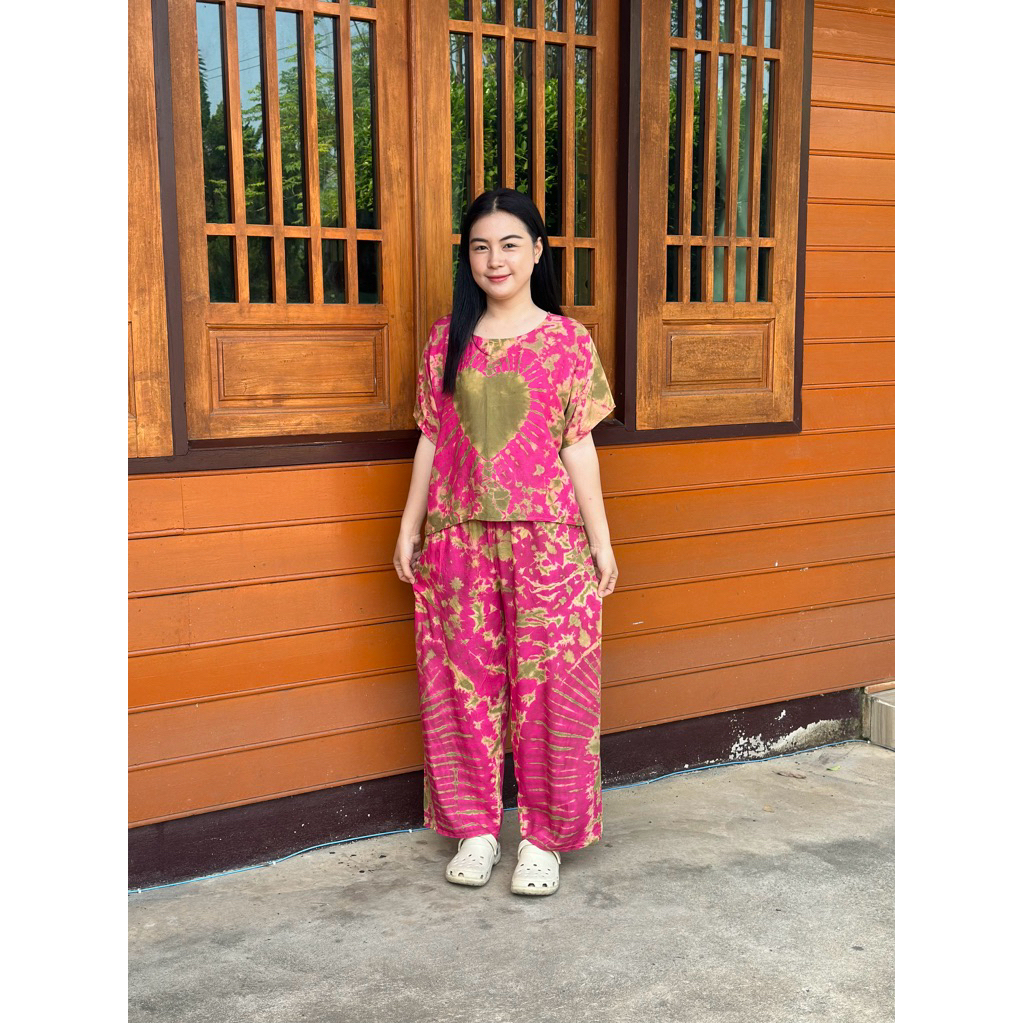 ชุดเซ็ทผ้าสปัน ผ้ากัดสี เสื้อกางเกงขายาว ผ้าสปัน นิ่ม พริ้ว ไม่ร้อน สีสันสดใส งานผ้าสปัน 100% By Narapat