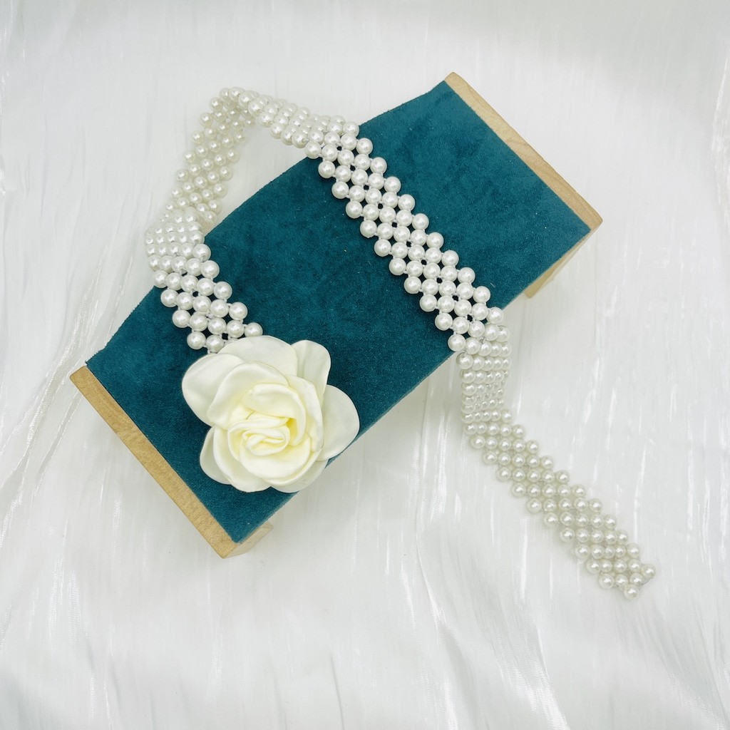 Elegant you นางสาว แฟชั่น เข็มขัดไข่มุก เข็มขัดดอกไม้ทอโซ่มุก เด็กใส่ได้