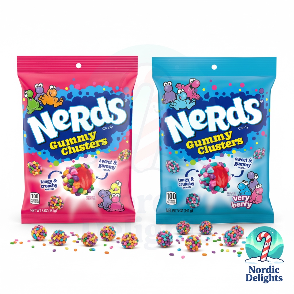 Nerds Gummy Clusters Rainbow & Very Berry 5oz 141g/เนิร์ดส์ กัมมี่คลัสเตอร์ เยลลี่เคลือบลูกกวาด เปรี้ยวหวานกรอบหนึบ
