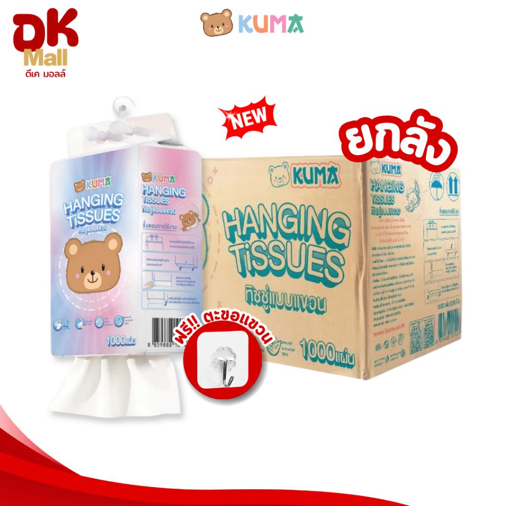 (live) [ยกลัง 10 หิ้ว] KUMA Hanging Tissues กระดาษทิชชู่แบบแขวน คุมะ หนา 4 ชั้น 1000 แผ่น