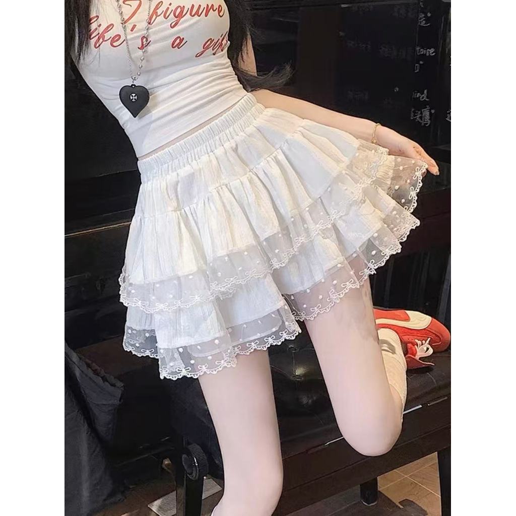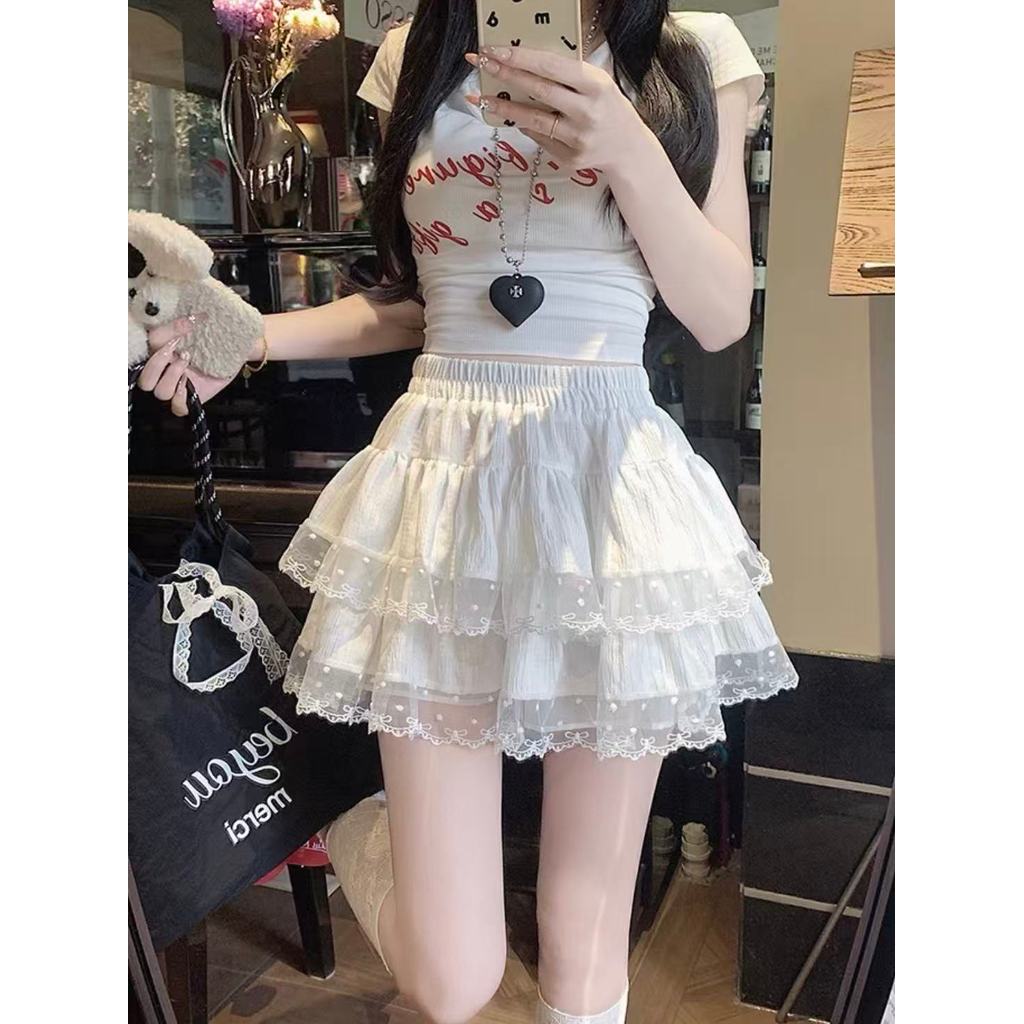 ส่งจากไทยทุกวัน กระโปรงลูกไม้เข้ารูปเอวสูง มีซับใน กระโปรงบัลเล่ต์น่ารัก โปรงทรงเอ🎀YOUMI