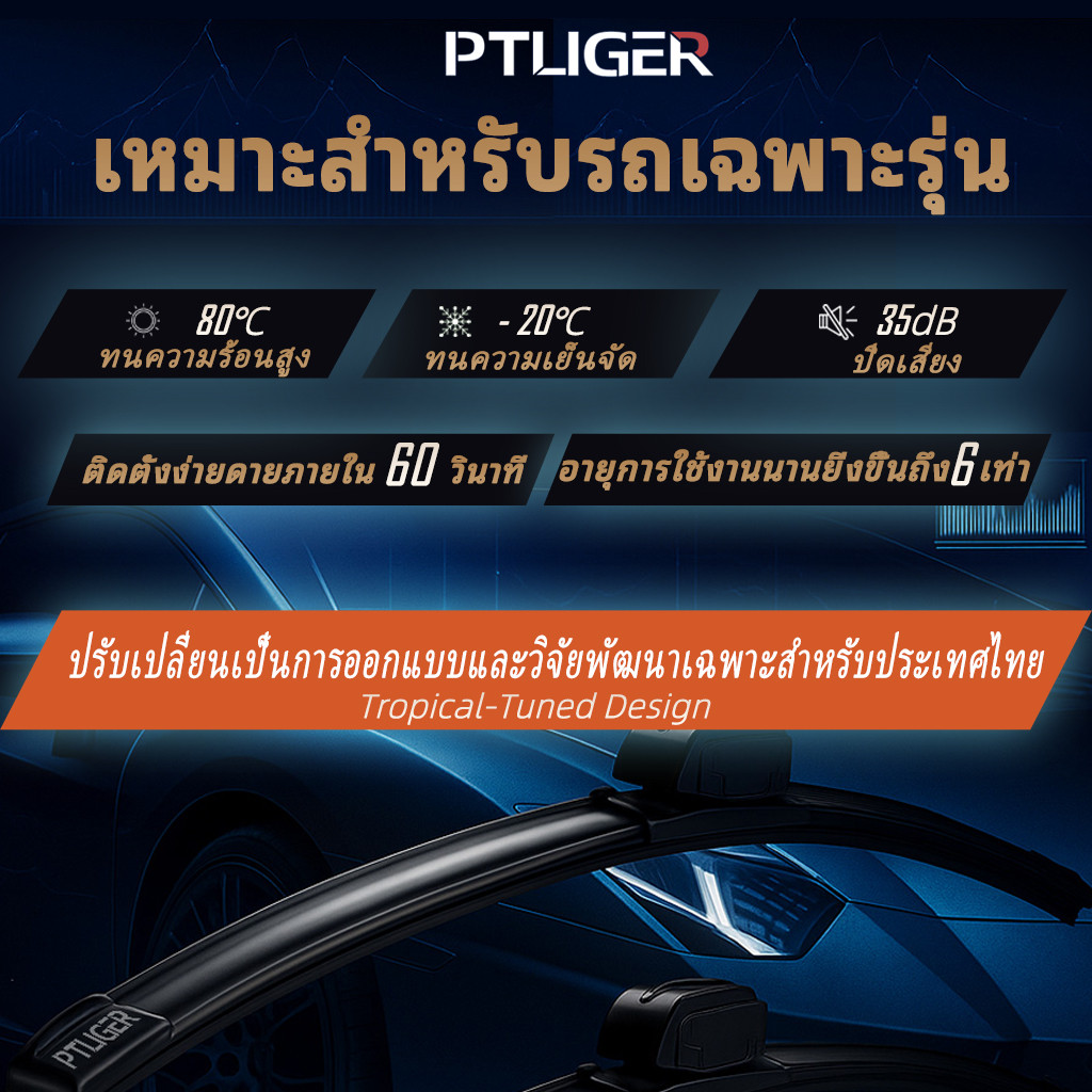ที่ปัดน้ำฝนไร้โครง ยางปัดน้ำฝน ซิลิโคนPTLIGER ใบปัดน้ำฝน ใบปัดน้ำฝนแบบทนทาน HONDA CITY/CIVIC/ CRV/ACCORD/MOBILIO/HRV wiper blades