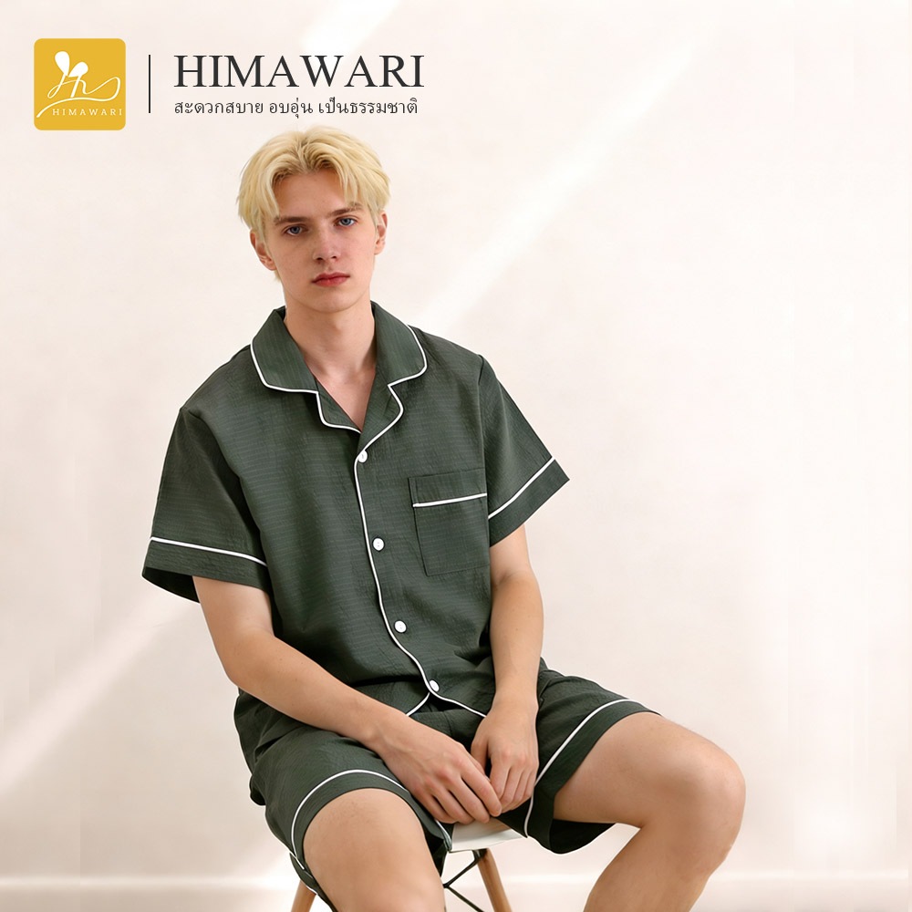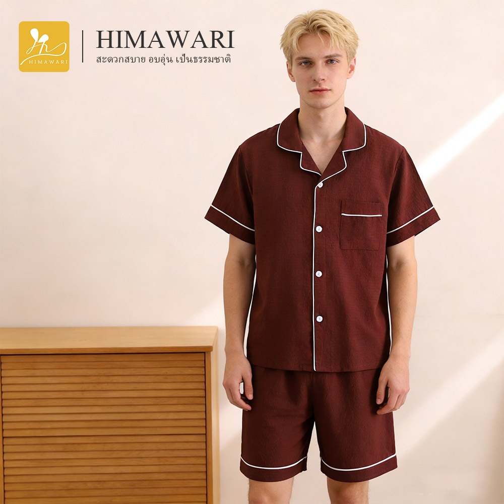 HIMAWARI丨ชุดนอนผู้ชาย ชุดนอนผ้าฝ้าย ชุดนอนแขนสั้น นุ่มสบายผิว ใส่ได้ทุกฤดู