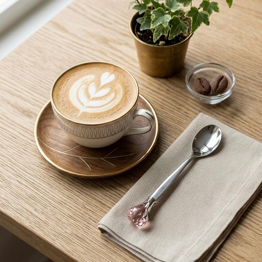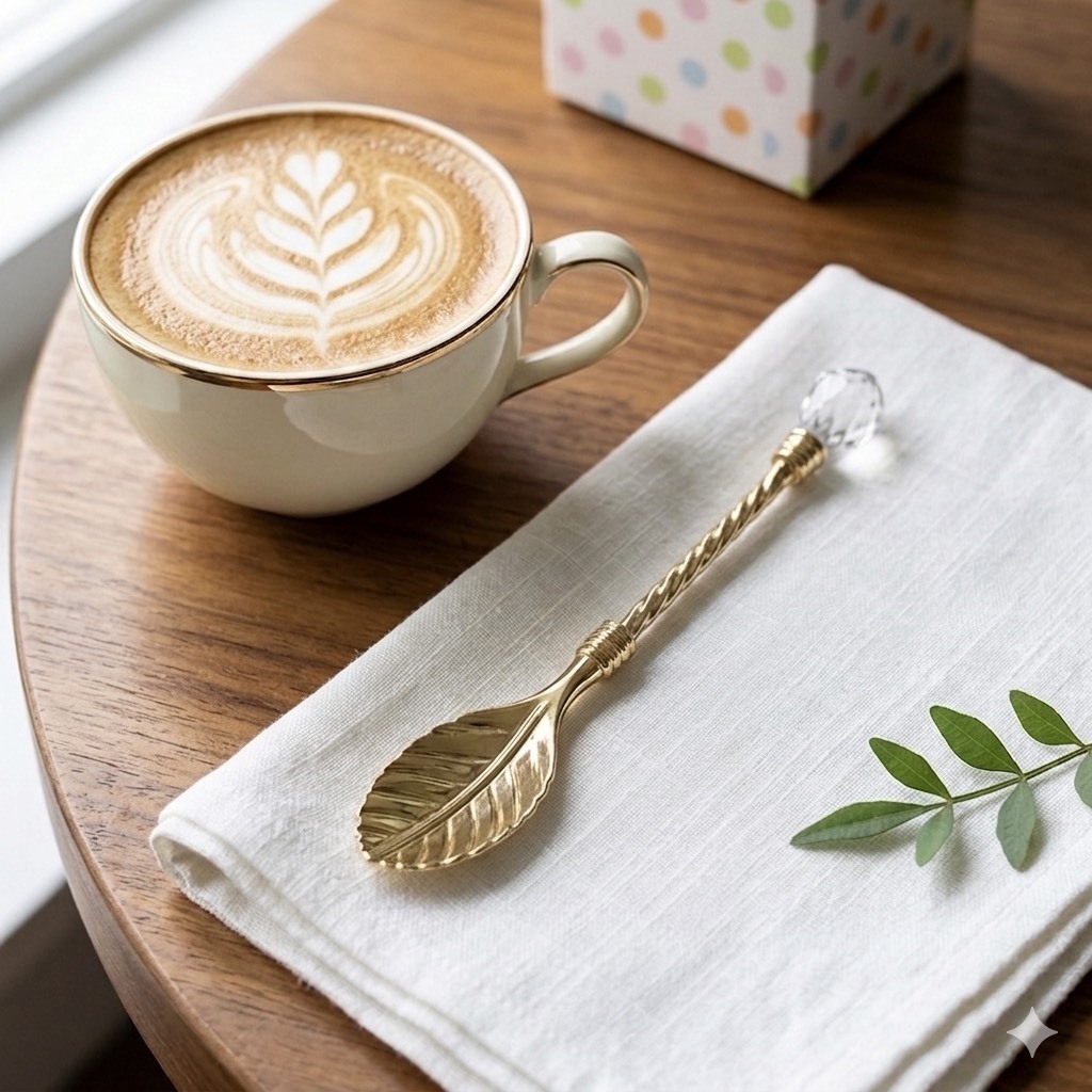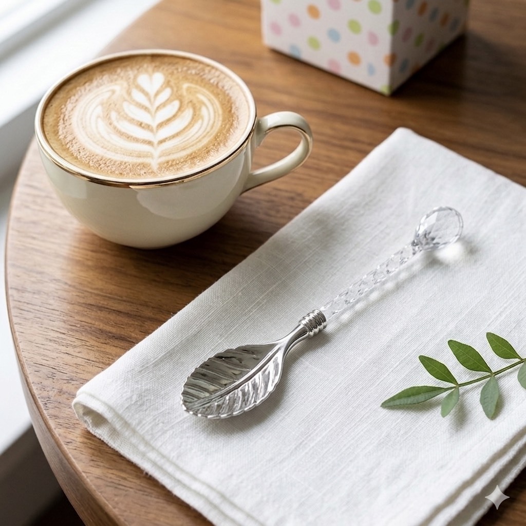 ช้อนคนกาแฟ ช้อนขนม ดีไซน์ใบไม้สุดหรู ช้อนปลายด้ามคริสตัลสไตล์ยุโรป สำหรับคาเฟ่และโฮมคาเฟ่ ของขวัญสุดพรีเมียม ของชำร่วย