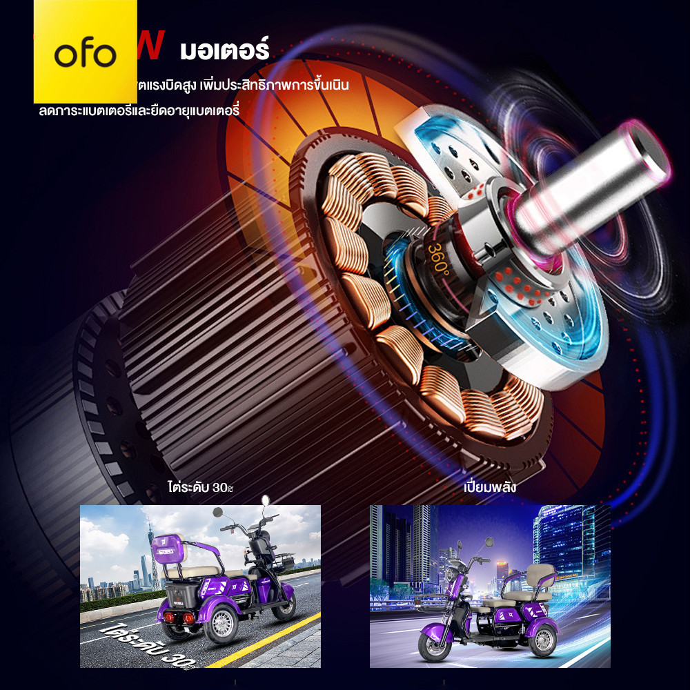 OFOEBIKE 1000w รถสามล้อไฟฟ้า รถไฟฟ้าผู้ใหญ่3ล้อ จักรยานไฟฟ้า3ล้อ รถมอเตอร์ไซค์ไฟฟ้าสามล้ แบตลิเที่ยม 48V15AHล้อแม็กebike