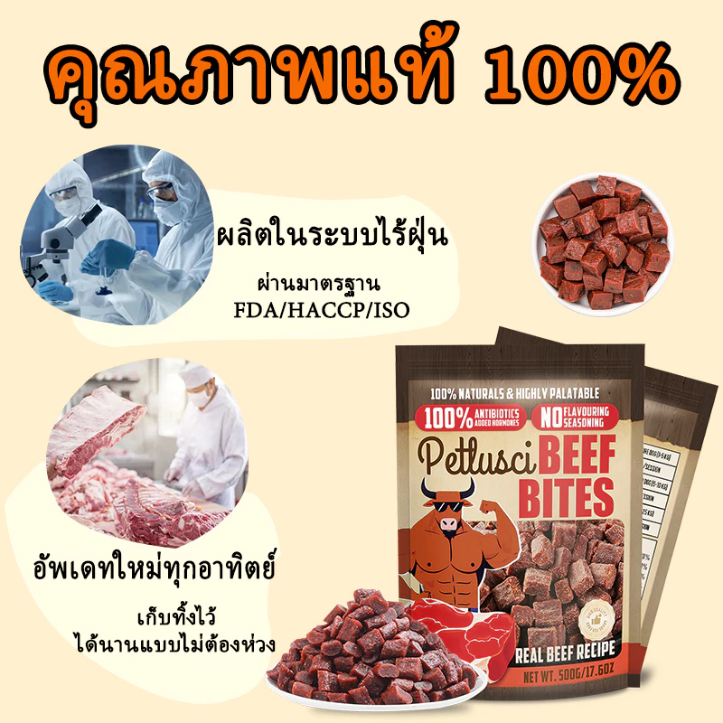 PETLUSCI ขนมสุนัข เนื้อวัวเม็ด 500g เนื้อวัวแท้ 100% โปรตีนสูง อร่อย เพิ่มความต้านทาน ไม่ปรุงแต่งรส