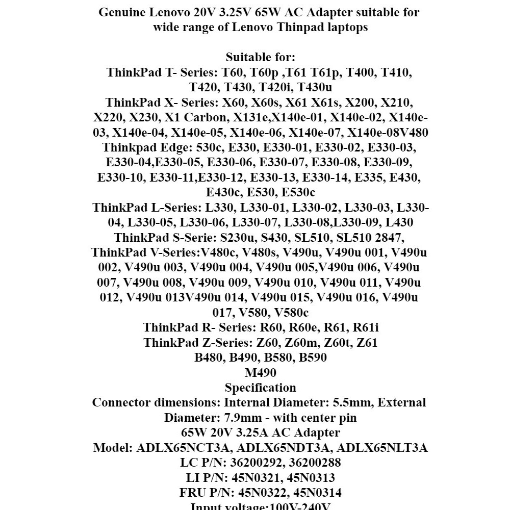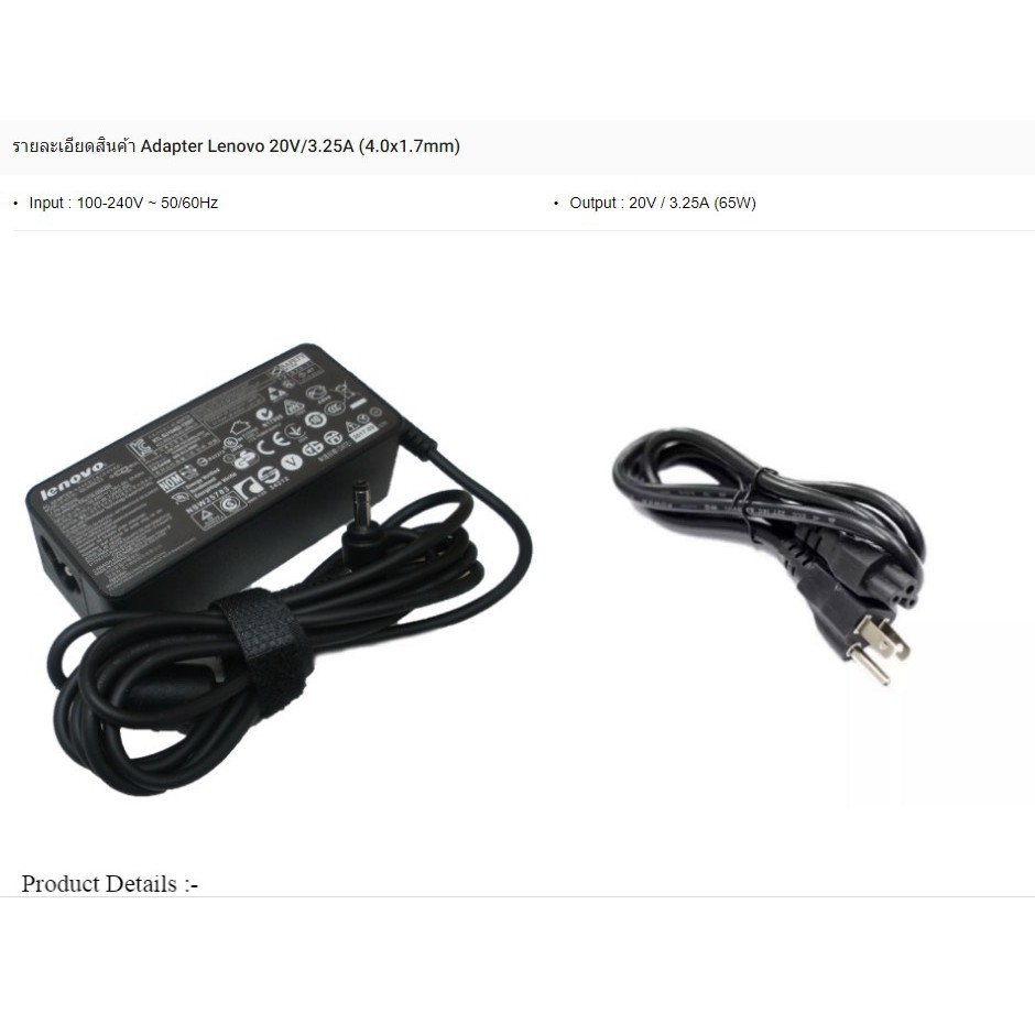 ZS Adapter Notebook อะแดปเตอร์ For LENOVO 20V 3.25A หัว 4.0x1.7 (สีดำ)แถม สายไฟ AC