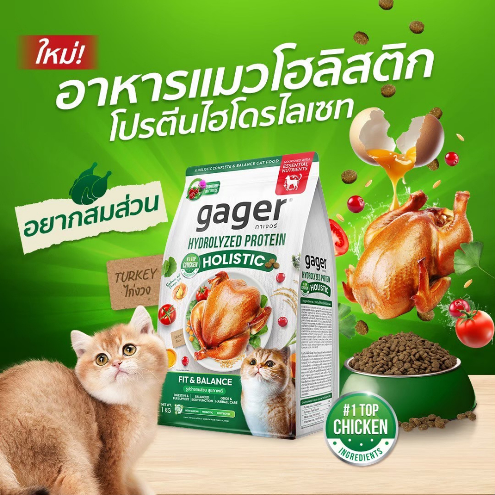 [ถุง 1kg] Gager อาหารแมว กาเจอร์โฮลิสติก โปรตีนไฮโรไลเซท รสไก่ รสไก่งวง สารอาหารครบวงจร Hydrolyzed Protein Holistic