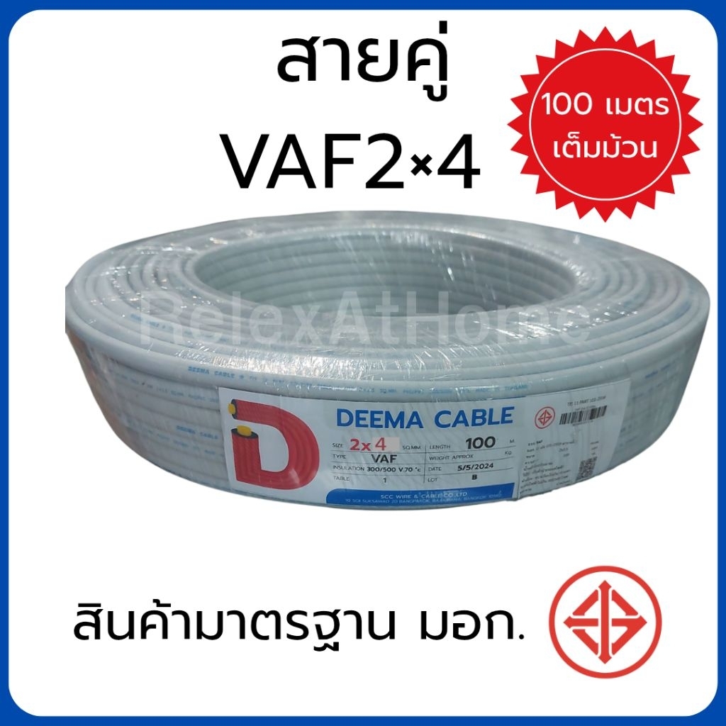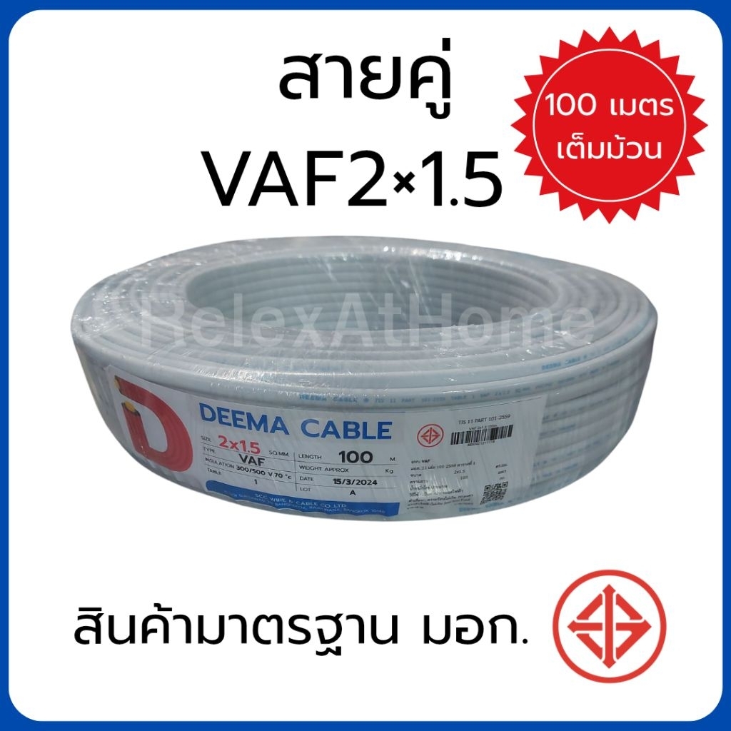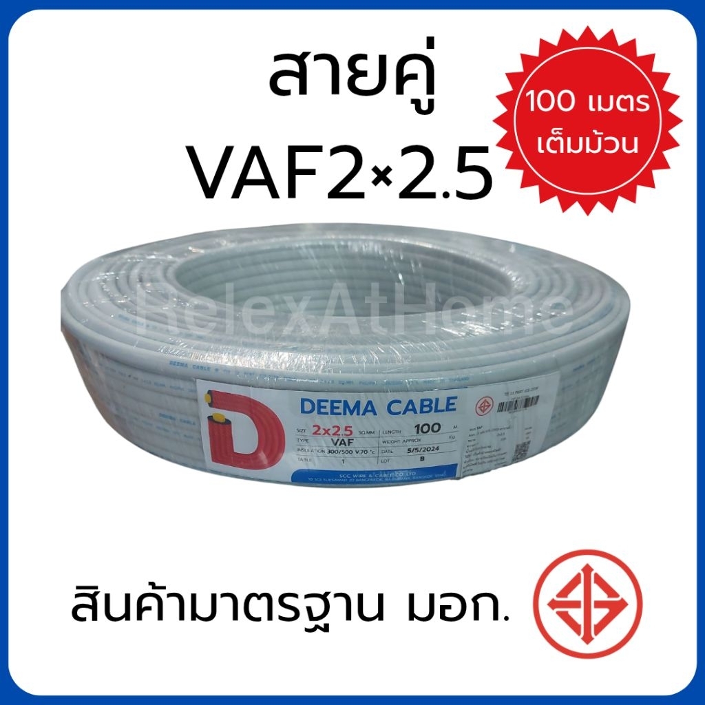 DEEMA สายไฟ VAF 2x2.5 sq.mm. สายคู่ สายขาว ขนาด 100 เมตร มาตรฐาน มอก. TIS TIS 11 PART 101-2553 สาย 2×1 2×1.5 2×2.5 2×4