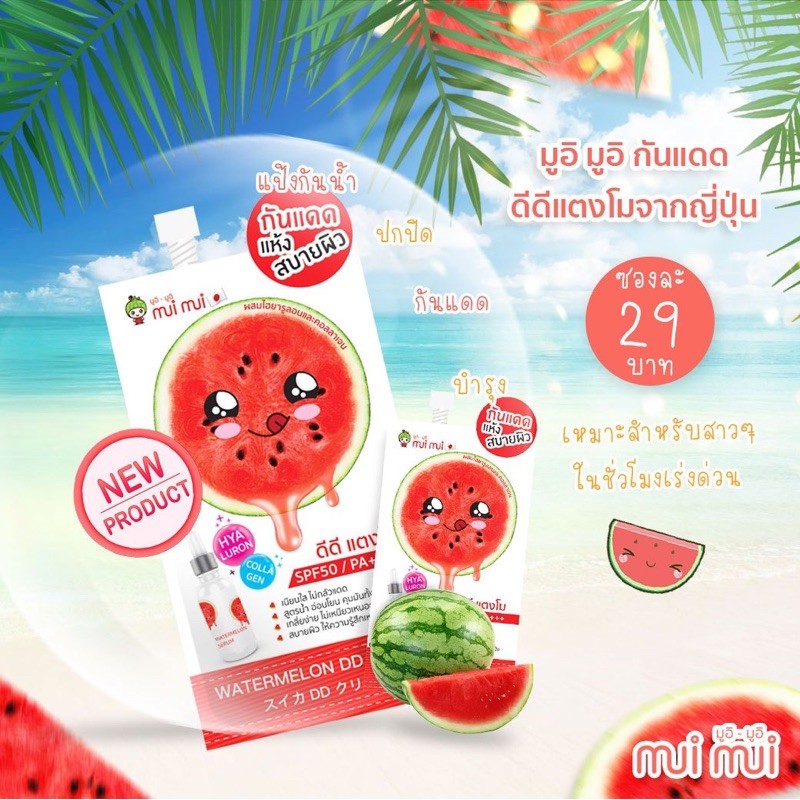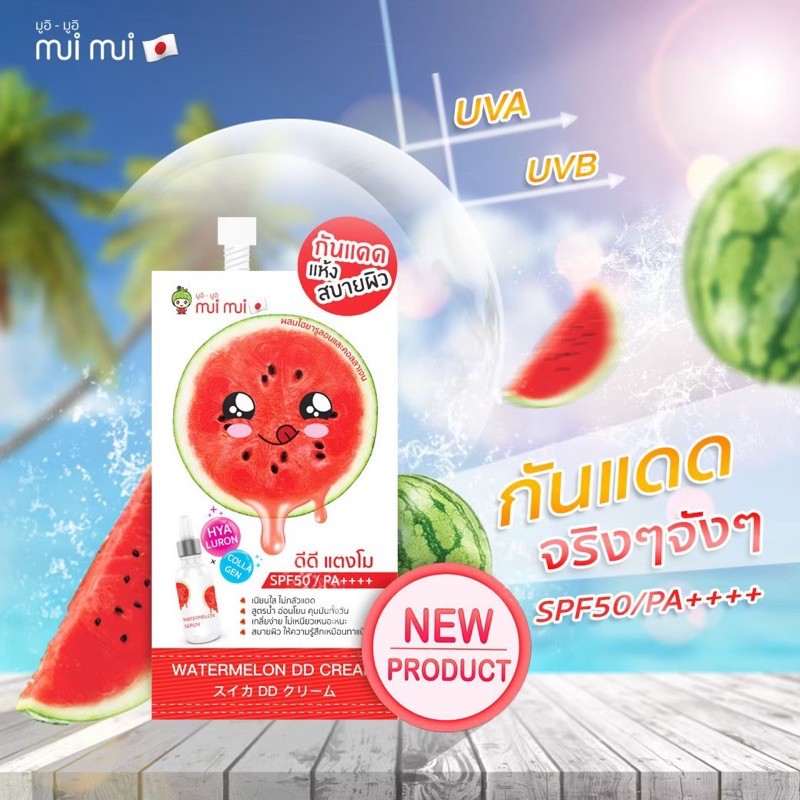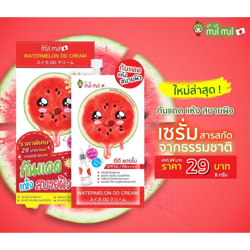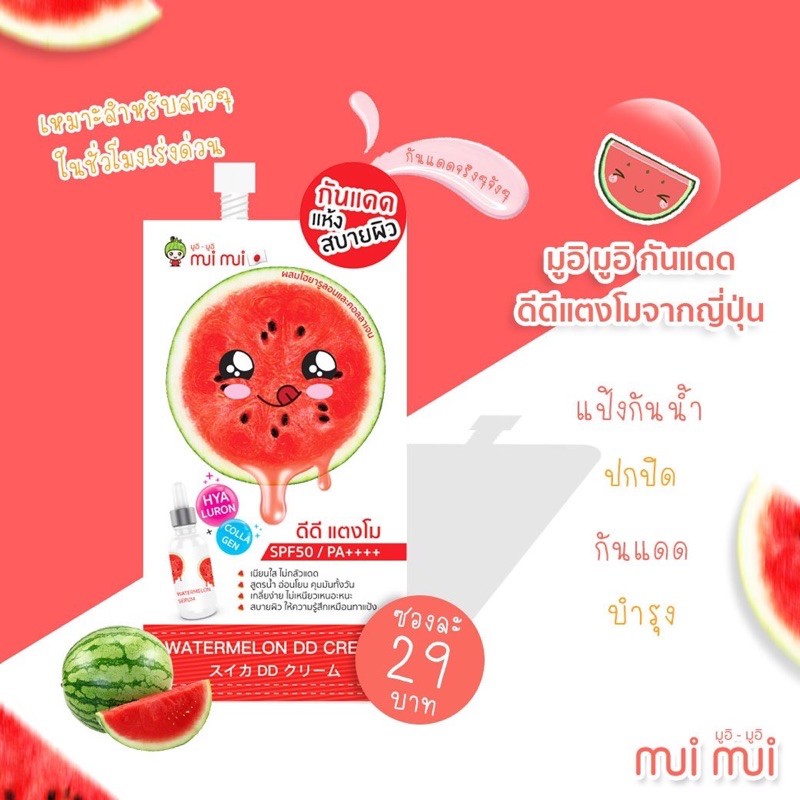 (1 แถม 1 )ดีดีแตงโม มูอิมูอิ watermelon dd cream บำรุงปรับสภาพผิวพร้อมกันแดด ซองละ10ml