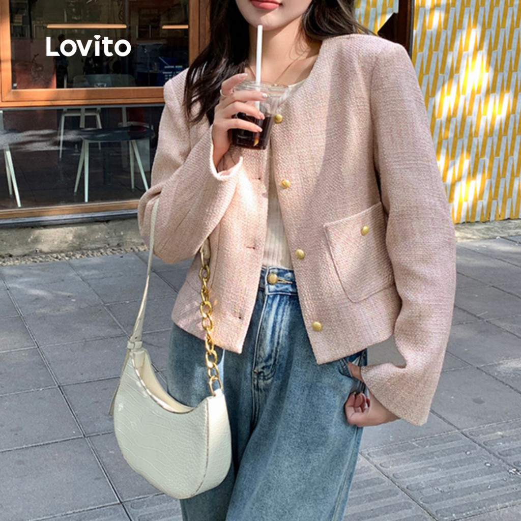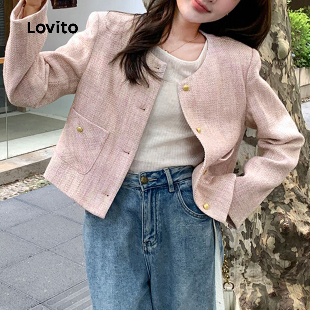 Lovito เสื้อโค้ทผู้หญิง ทรงหรู แขนยาว ฤดูใบไม้ร่วง ฤดูหนาว สีชมพู พร้อมกระเป๋าและเข็มขัด L156AD250