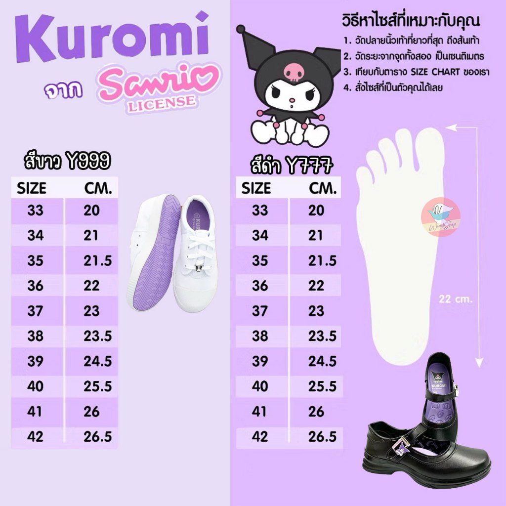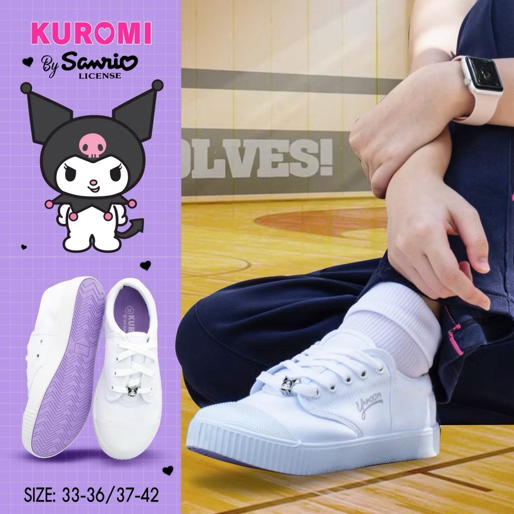รองเท้านักเรียน คุโรมิ Kuromi x Y-roon พื้นม่วง ดำ(Y777) ขาว(Y999) รองเท้าผ้าใบนักเรียน