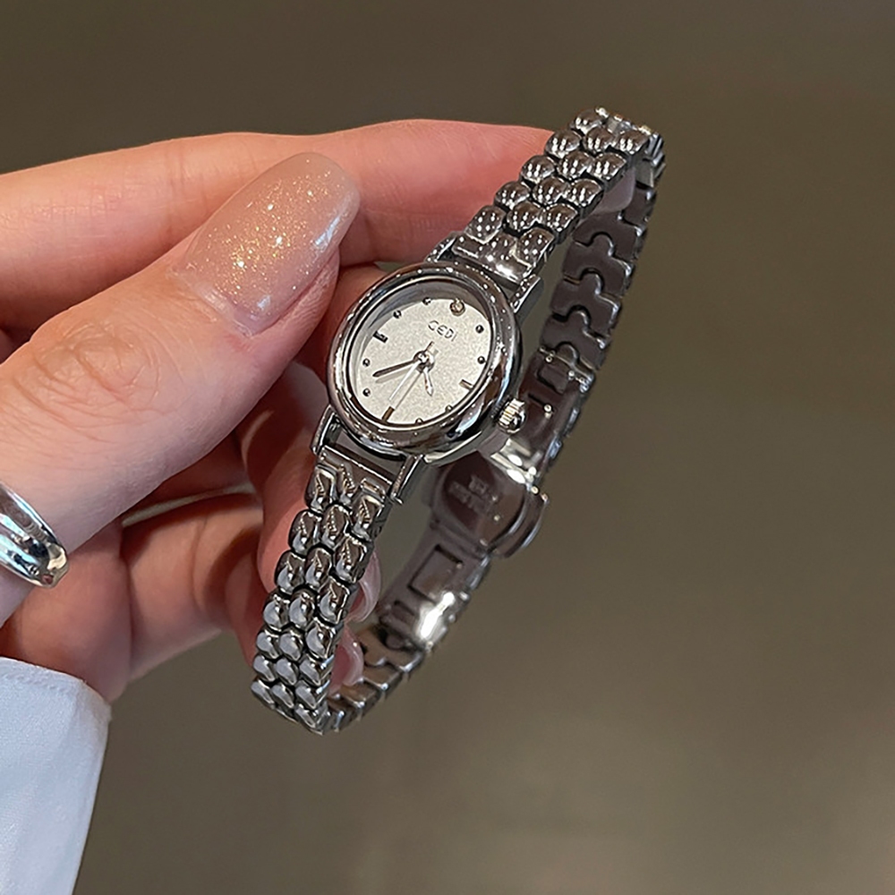 GEDI เกดี นาฬิกาสําหรับผู้หญิงนาฬิกาข้อมือวินเทจรูปไข่สายสแตนเลสนาฬิกาควอทซ์
