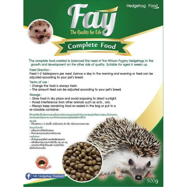 Fay อาหารเม่นแคระ คุณภาพ สูตรใหม่ ขนาด 500g. [พร้อมส่ง] ค่าสูงถูกสุดๆ