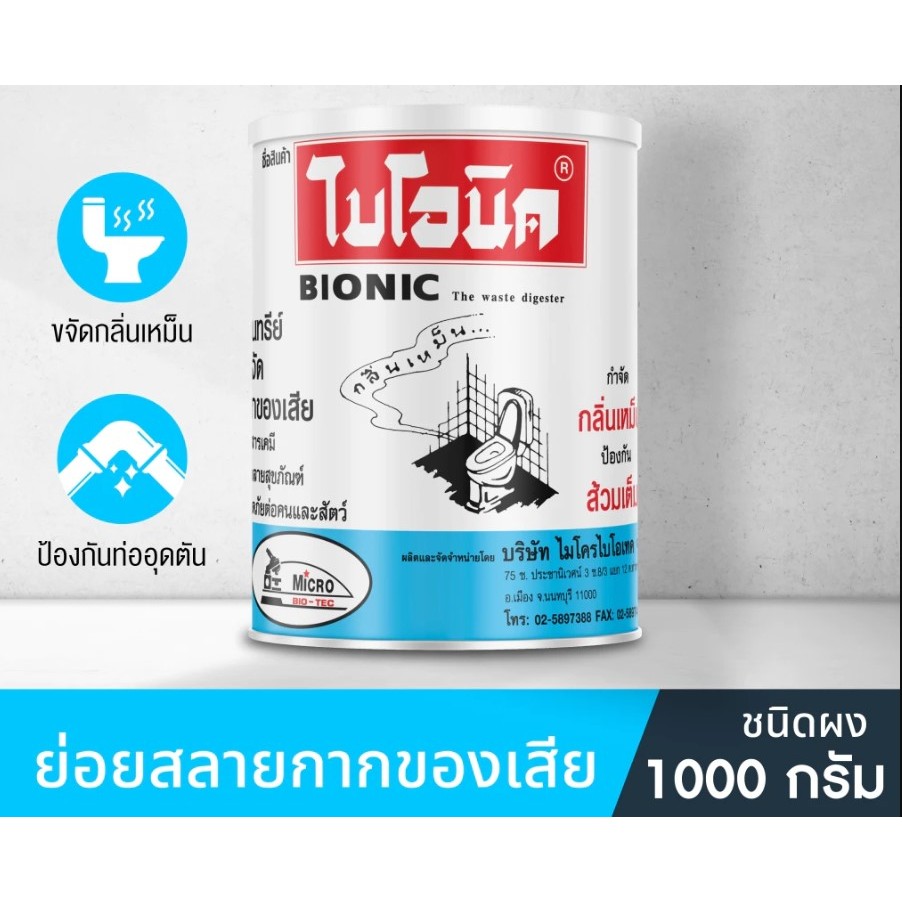ไบโอนิค BIONIC 1000g จุลินทรีย์กำจัดปัญหาในห้องน้ำ กลิ่นเหม็น ส้วมตัน ส้วมกดไม่ลง