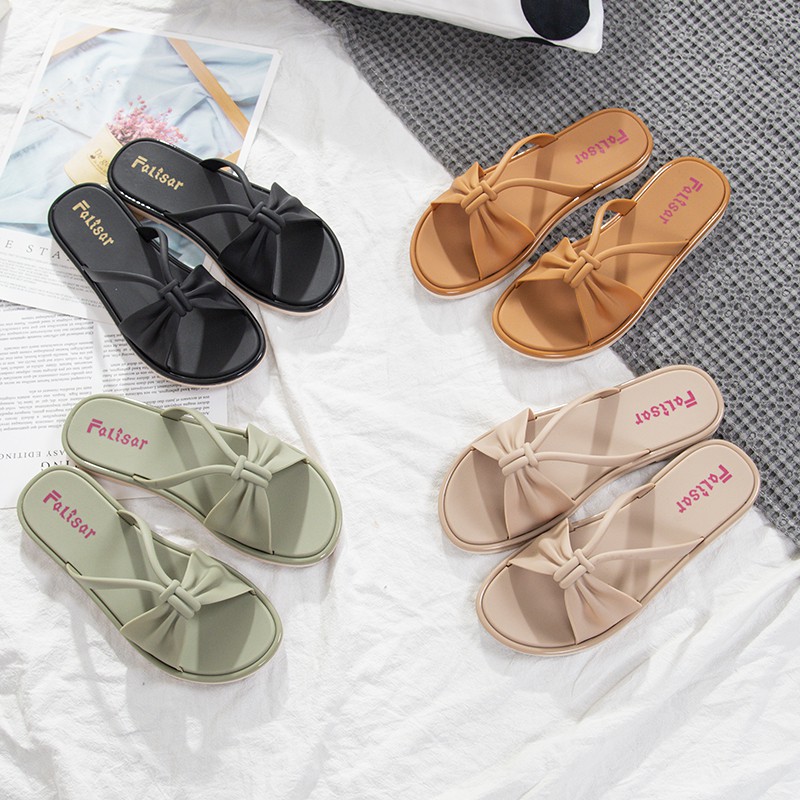 รองเท้าแตะลำลองแฟชั่นสำหรับผู้หญิง รูปโบว์ใส่สบายแบบสวมรุ่น 1205-1