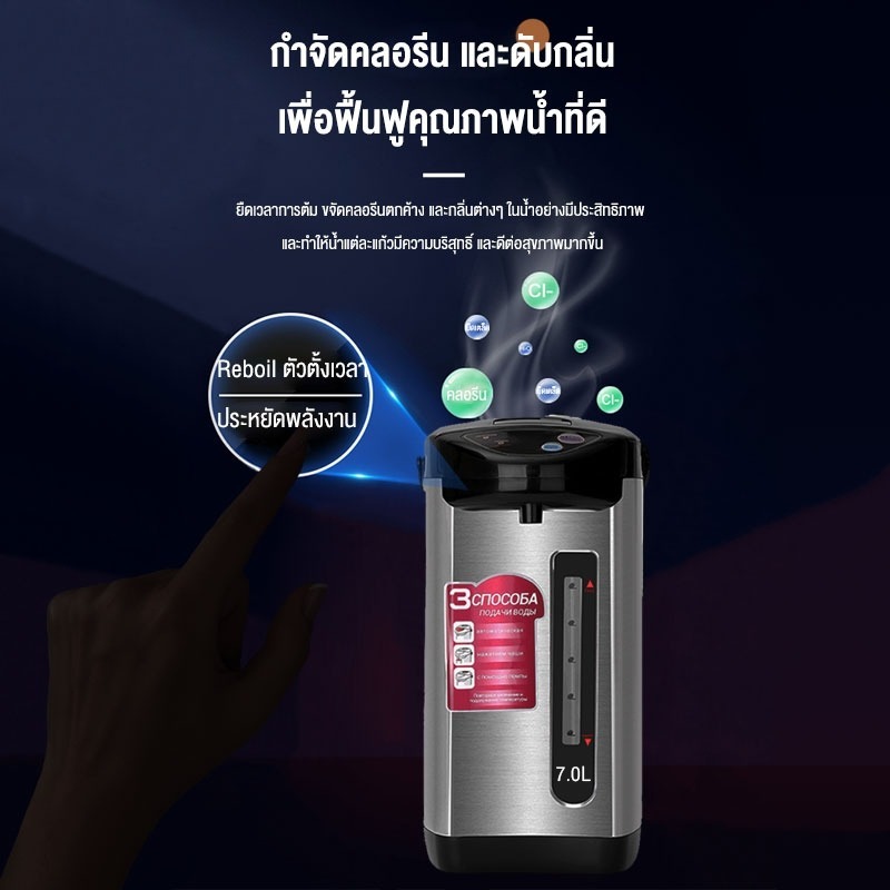 LENODI กระติกน้ําร้อนไฟฟ้า 7 ลิต กาน้ำร้อน 2000W สแตนเลส ปลอดภัยไร้กลิ่น อุ่นอัจฉริยะ มีปุ่มกดน้ำอัตโนมัติ